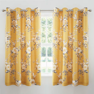 Catherine Lansfield Canterbury Floral Ochre Lined Eyelet Curtains