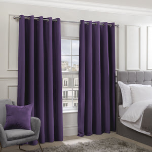 Cali Amethyst Purple Thermal Blackout Eyelet Curtains