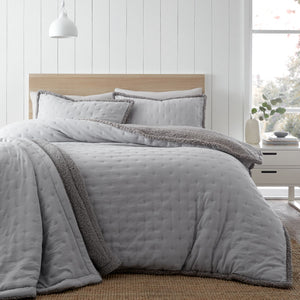 Catherine Lansfield Cosy Nori Soft Sherpa Fleece Silver Duvet Set