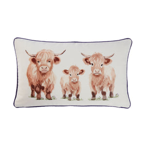 Hattie Highland Cow Printed Canvas Cushion (30cm x 50cm)