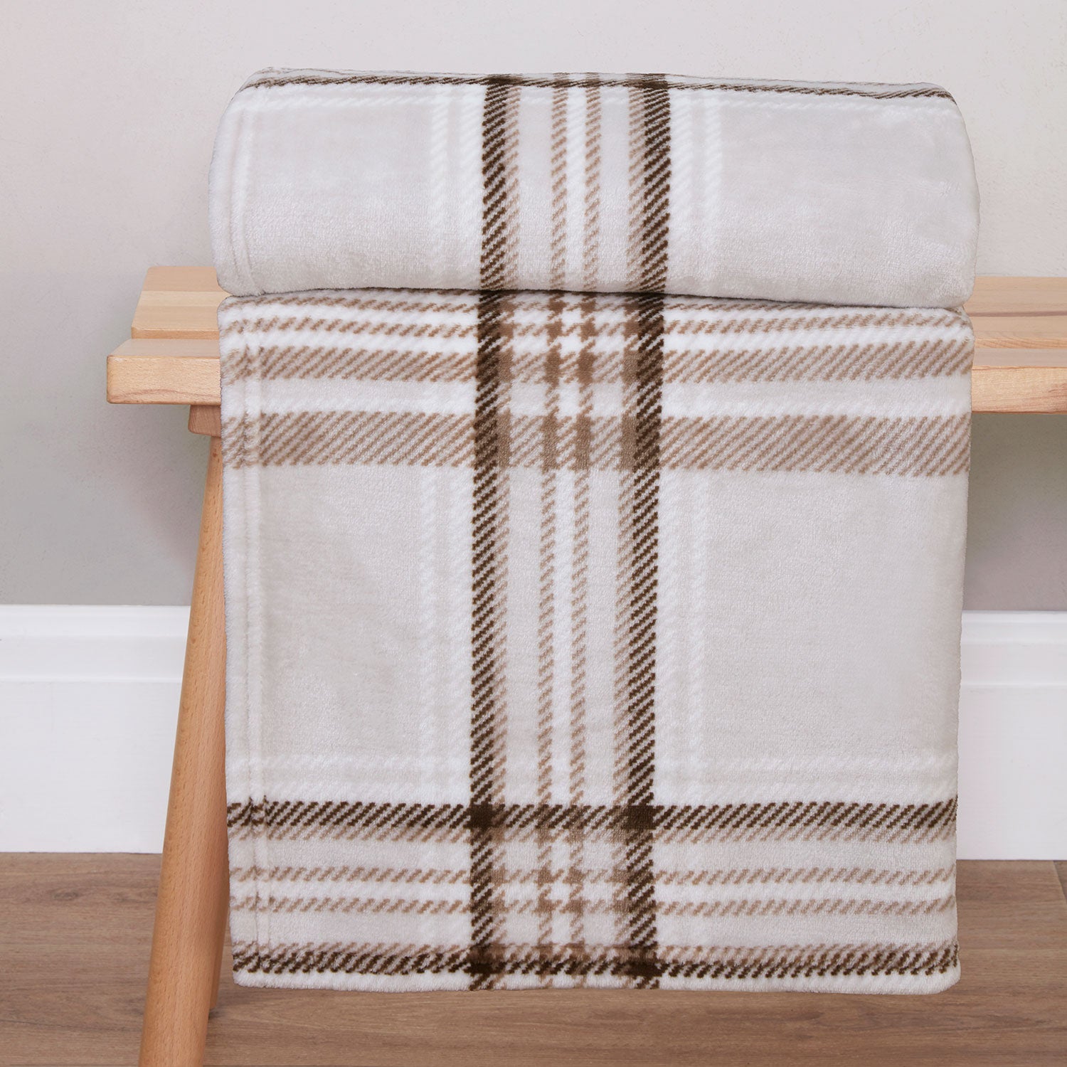 Check Natural Printed Fleece Throw (130cm x 150cm)