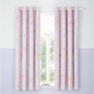 Catherine Lansfield Fairytale Unicorn Pink Reversible Eyelet Curtains