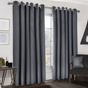 Midnight Charcoal Grey Embossed Velvet Thermal Blackout Eyelet Curtains