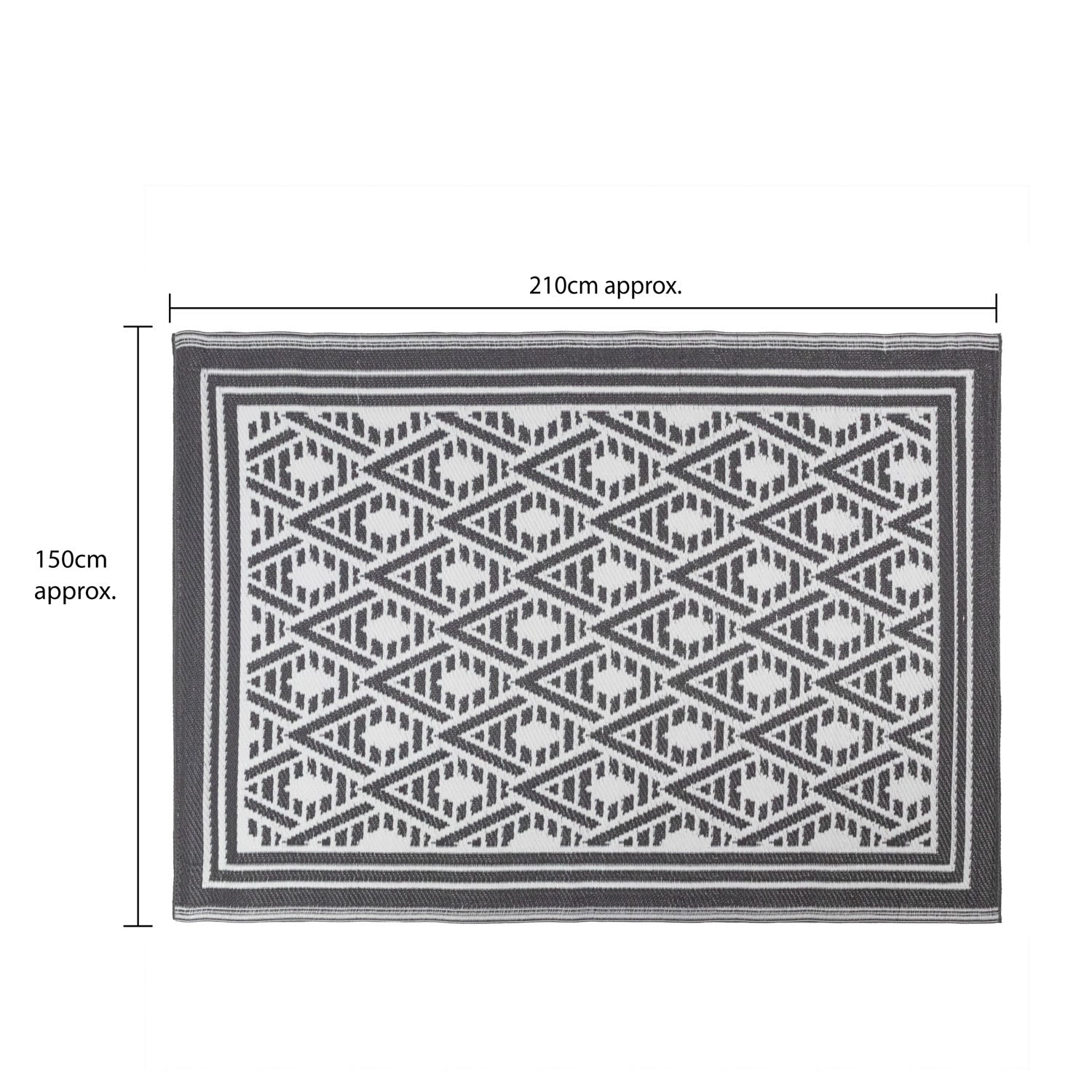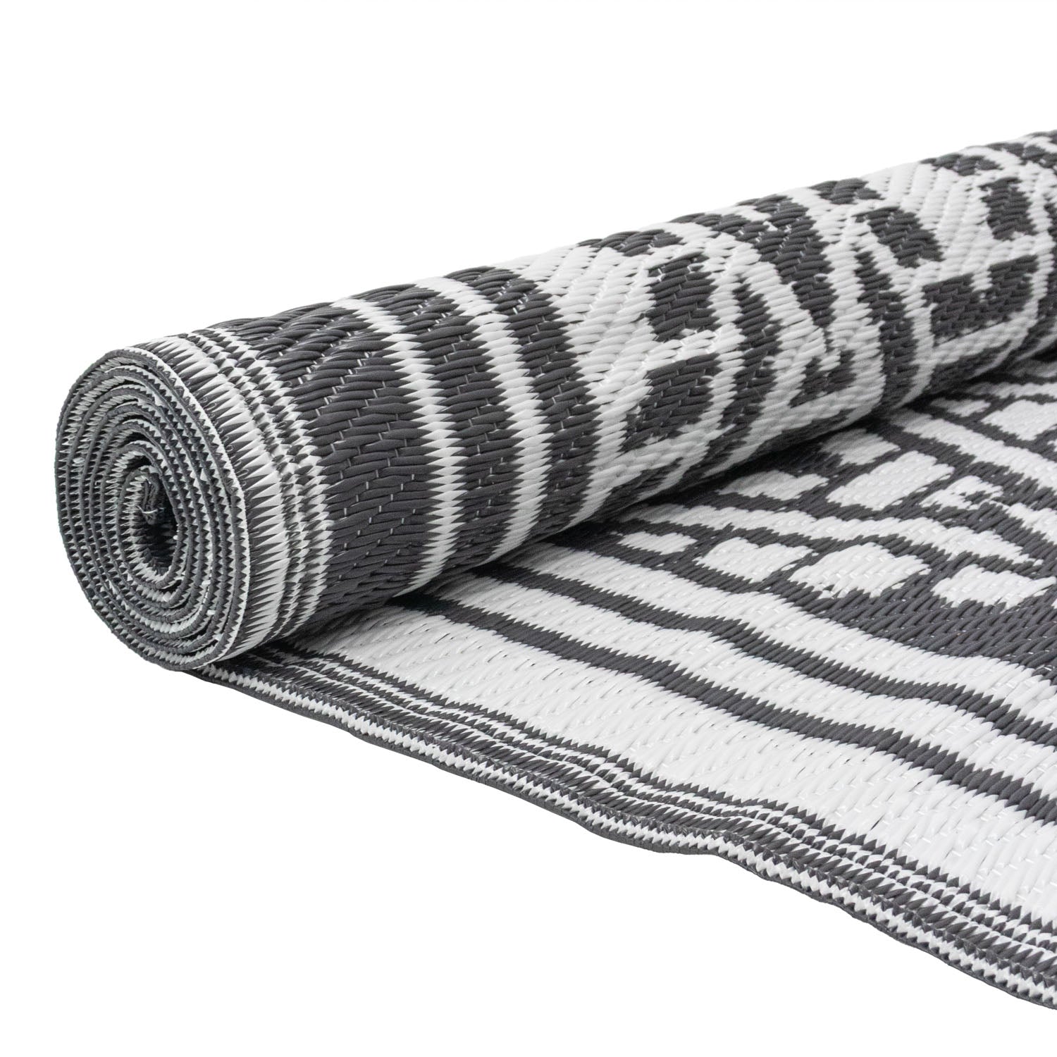 Lightweight Reversible Large Black White Geometric Pattern Outdoor Rug
