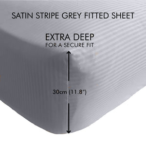 Catherine Lansfield Grey Satin Stripe 300TC Deep (32cm) Fitted Sheet