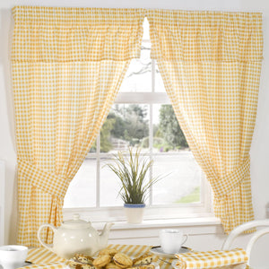 Molly Gingham Lemon Yellow Pencil Pleat Curtains With Pelmet Header