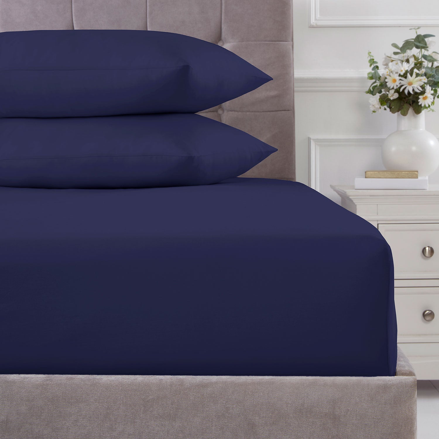 100% Cotton 180TC Navy Deep Fitted Sheet