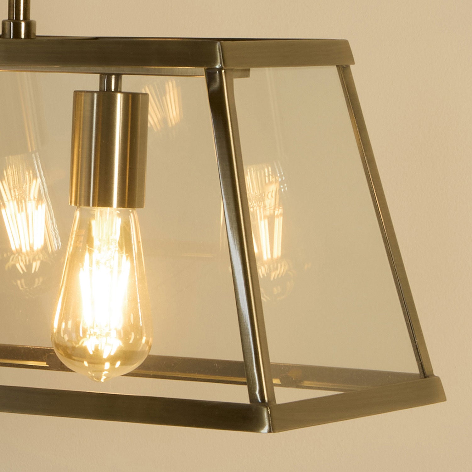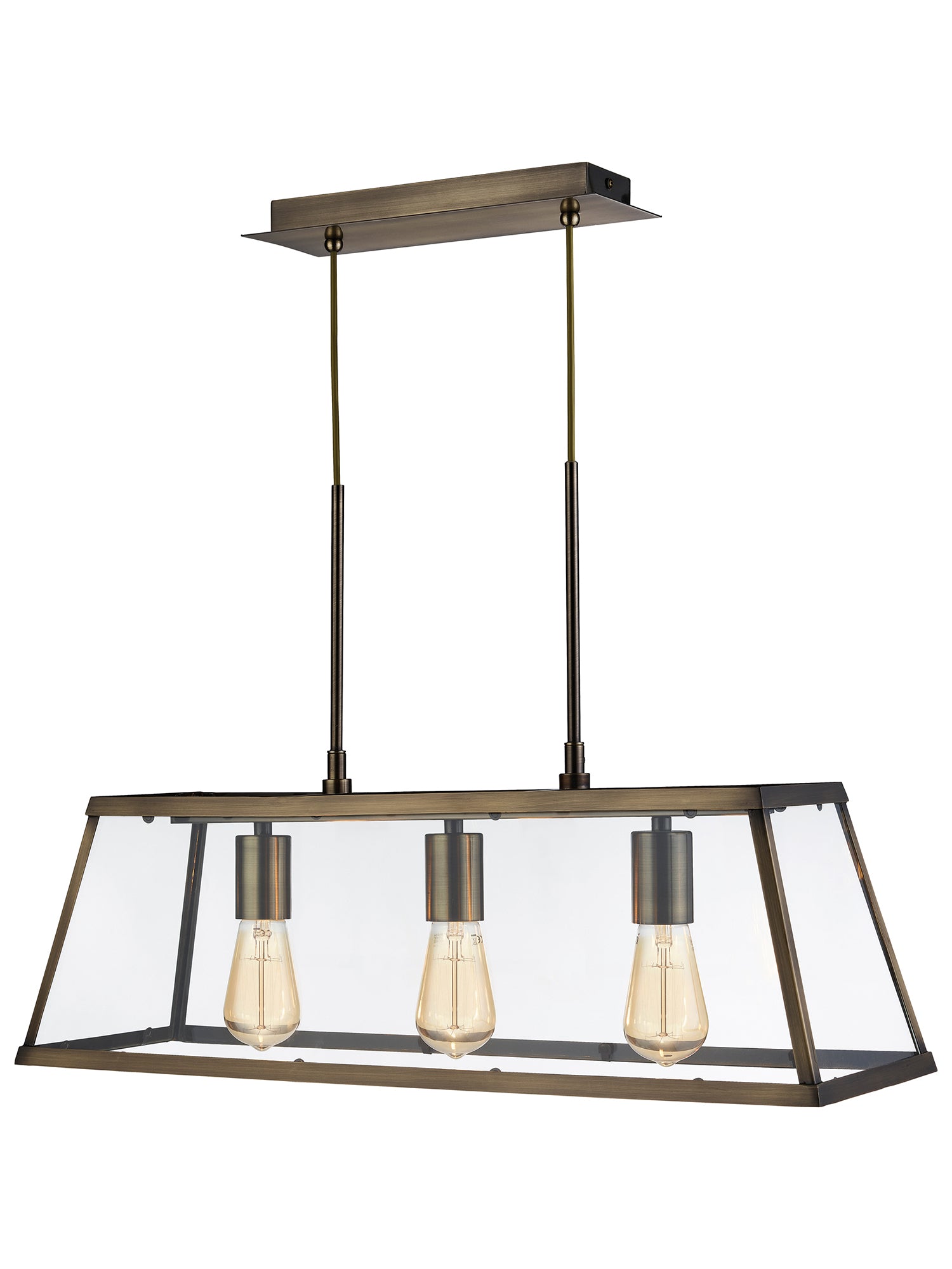 Harbour 3 Light Antique Brass Lantern Bar Pendant Ceiling Light