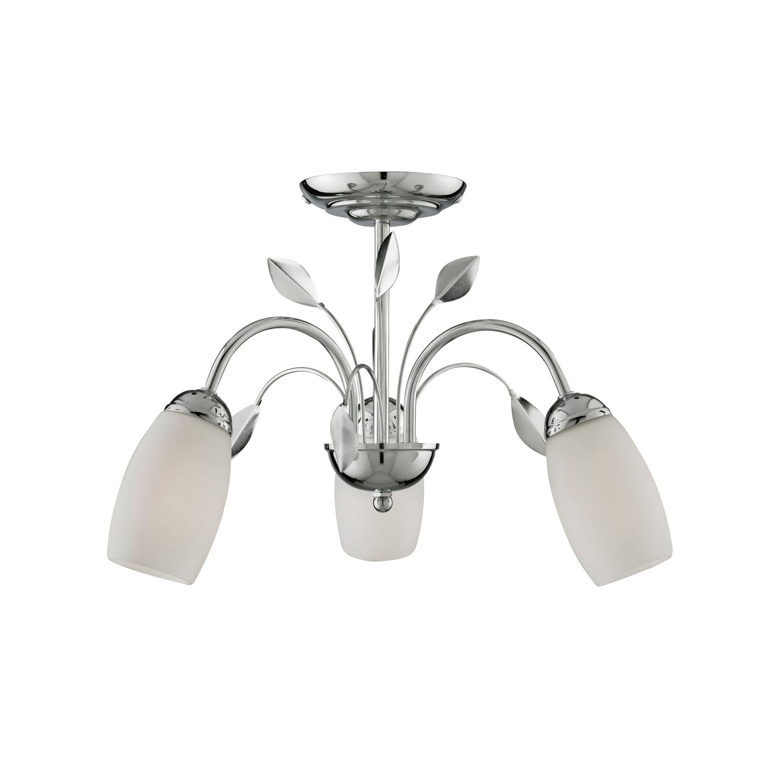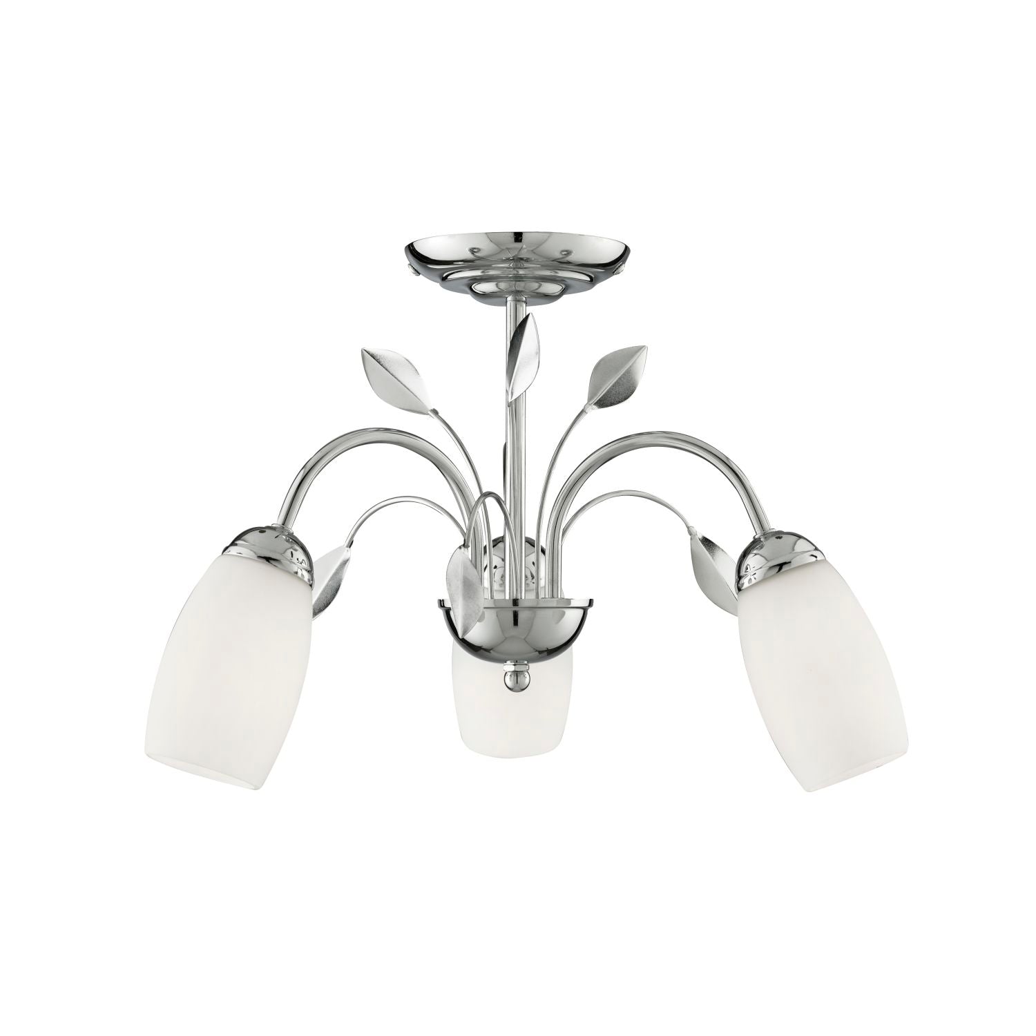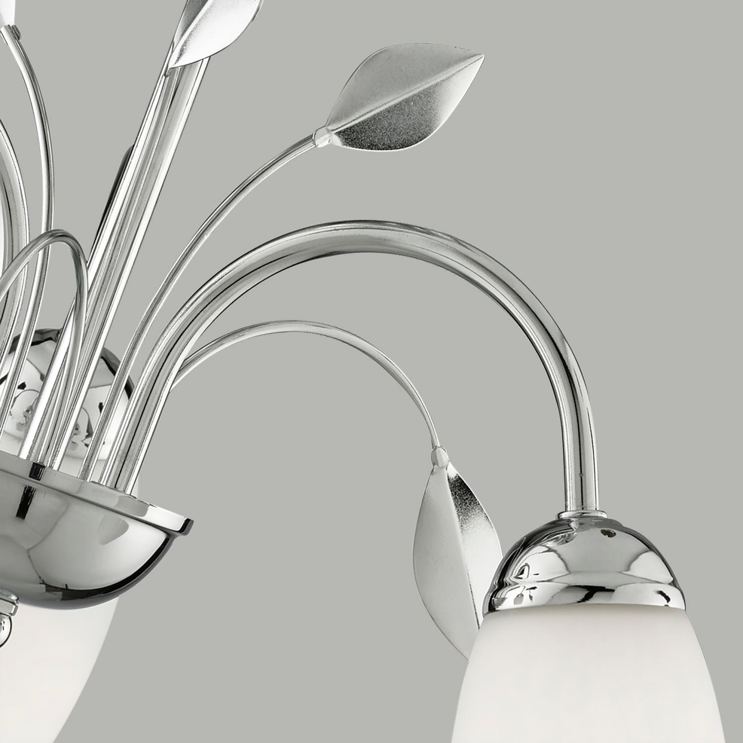 Chrome Leaf Deco 3 Ceiling Light With White Glass Shades