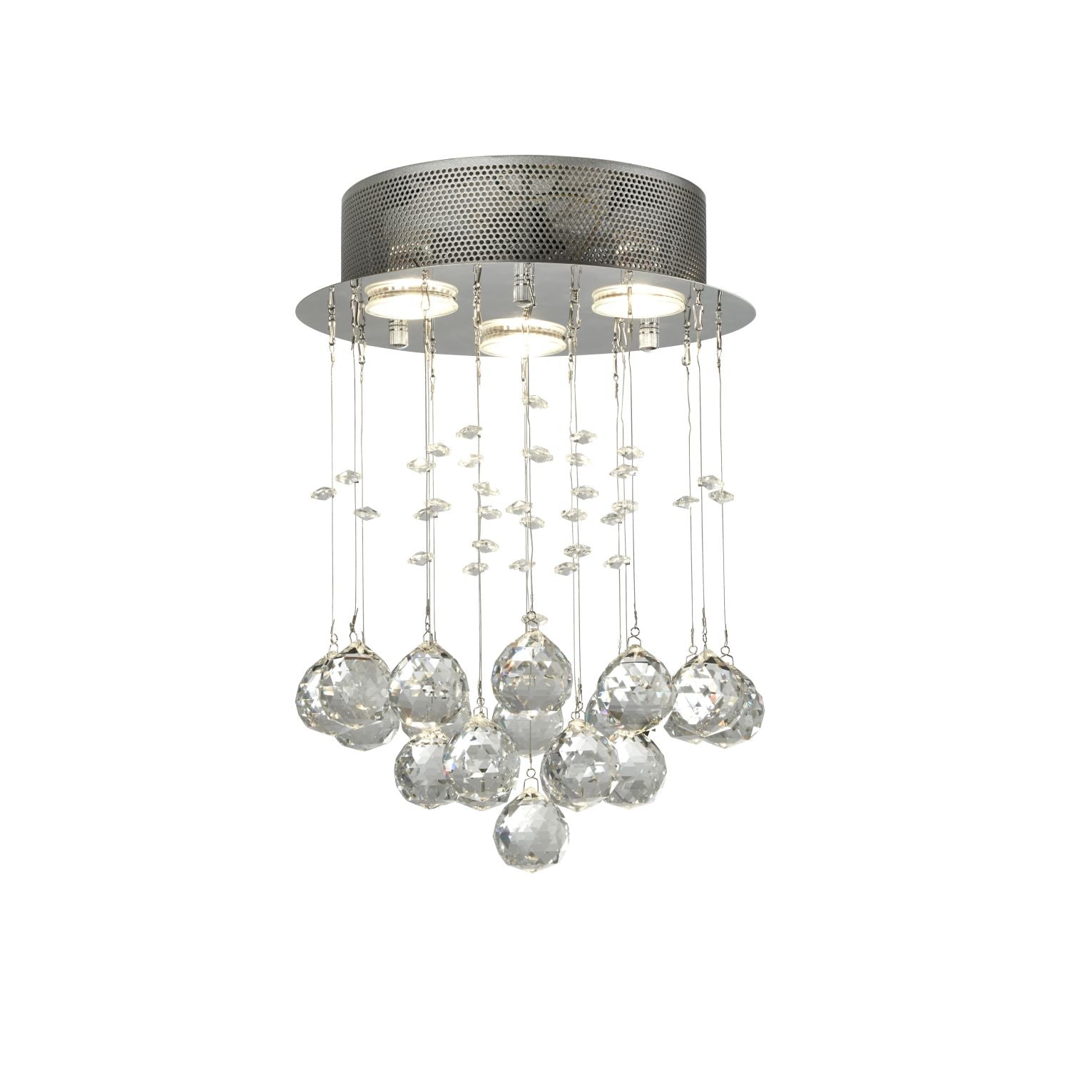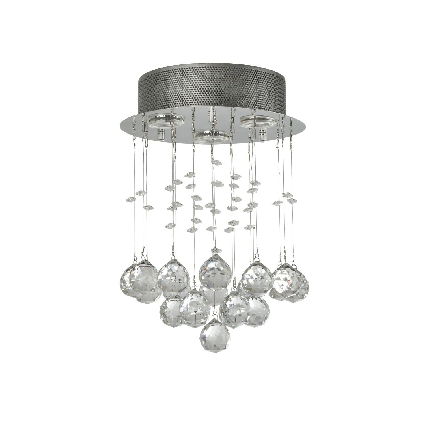 3 Light Chrome Ceiling Flush Light With Acrylic Drops