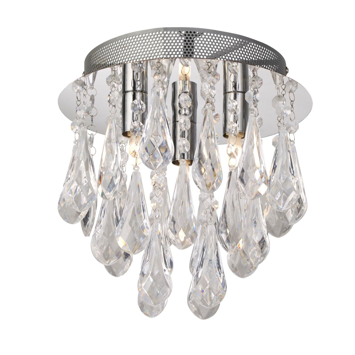 3 Light Chrome Ceiling Light With Clear Acrylic Drops