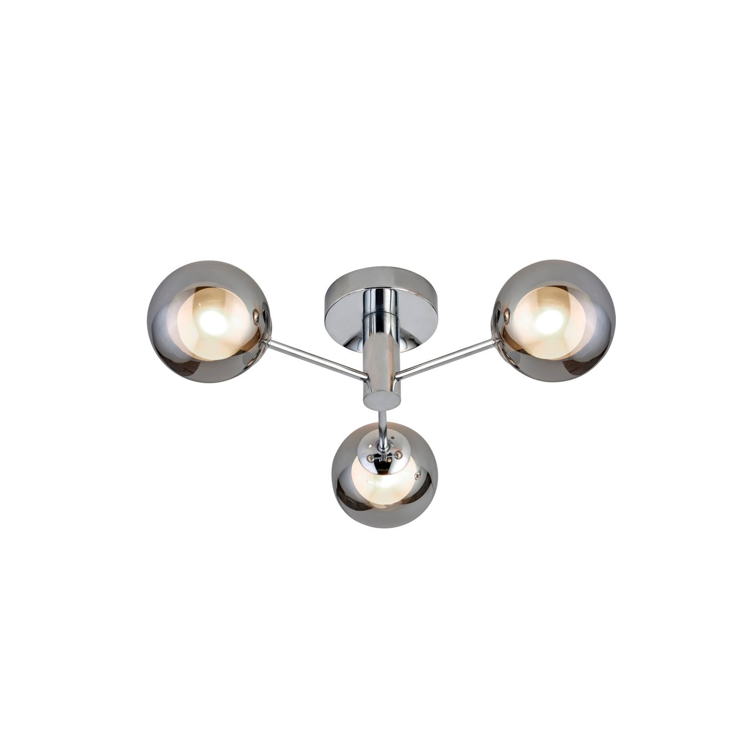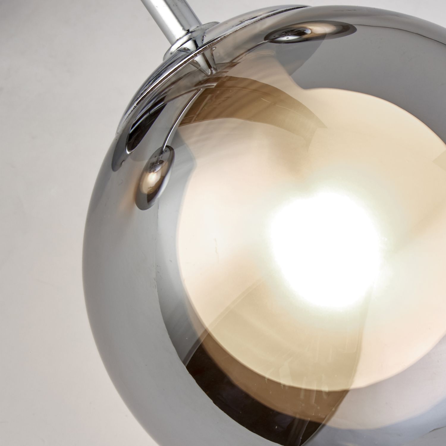 Looking for the perfect lighting addition to your modern living space? Our chrome ceiling light features three captivating lights surrounded by sleek smoked glass shades, creating a focal point that will take your home décor to the next level. Illuminate your space with style and sophistication with this stunning piece.