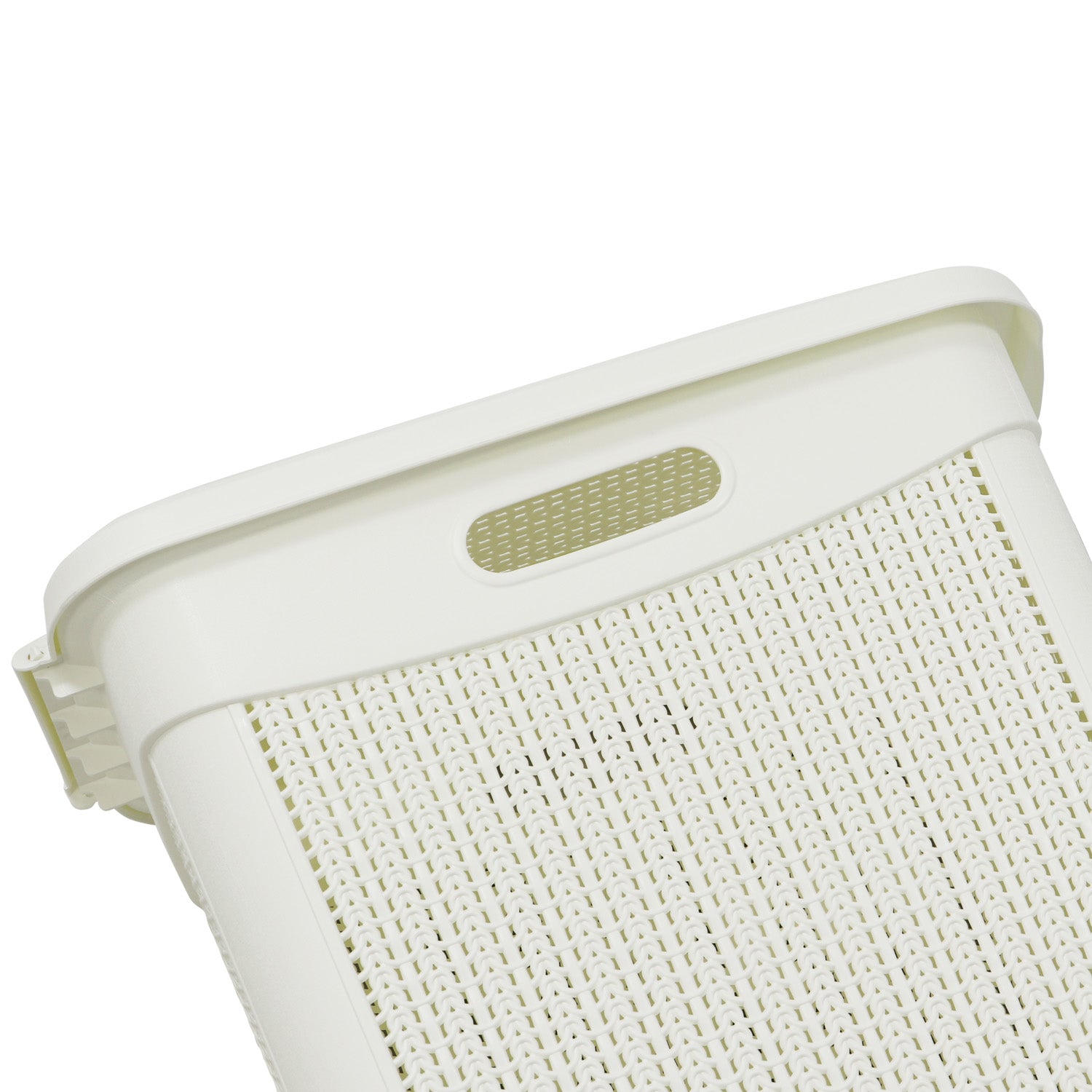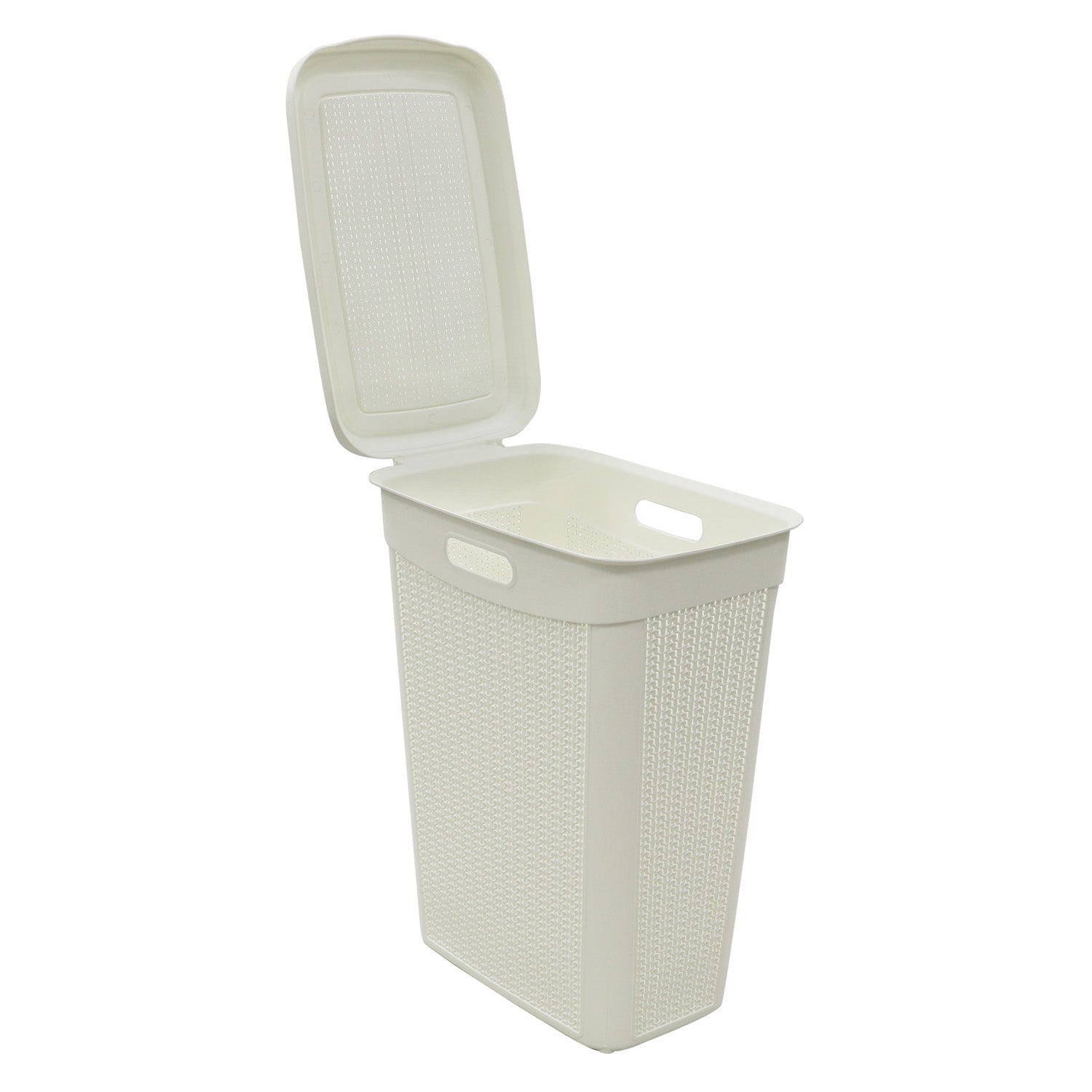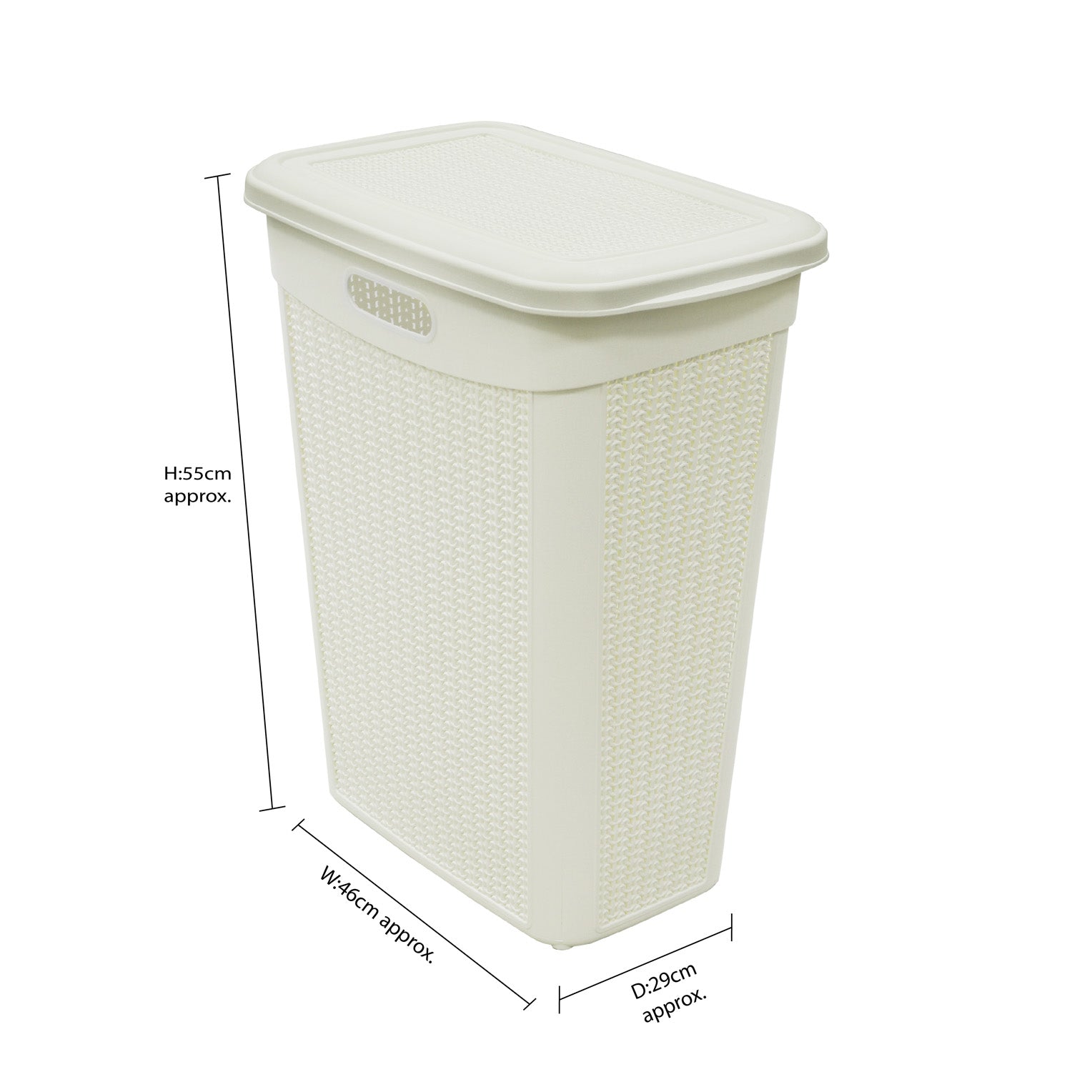 This laundry basket features a knitted loop design in the colour ivory white to complement any home decor.