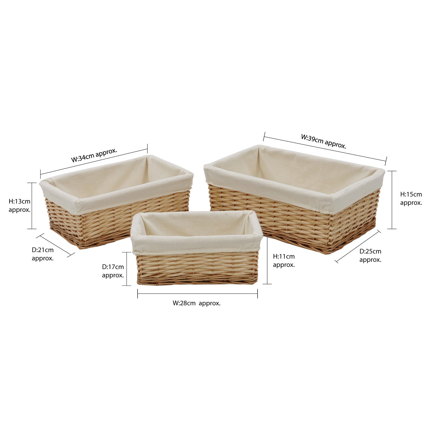 Acacia Honey Set of 3 Rectangular Willow Storage Baskets