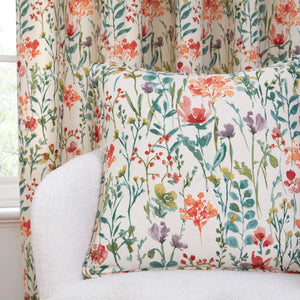 Amaryllis ready-made curtains, beautifully designed watercolour floral in shades of pinks and greens, printed on a warm ivory background.