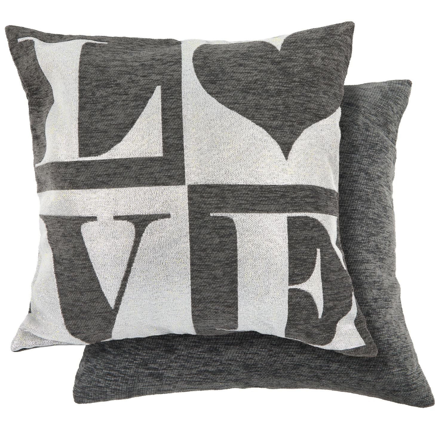 Amor Love Charcoal Cushion Covers Pair (43cm x 43cm)