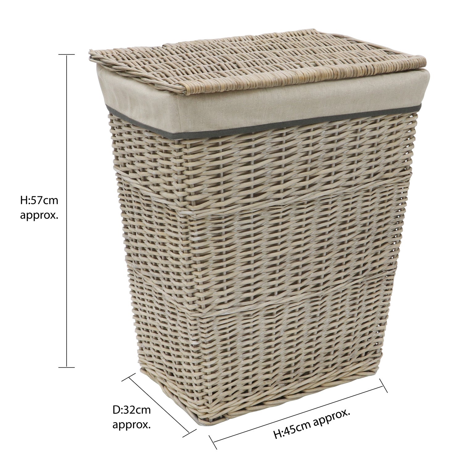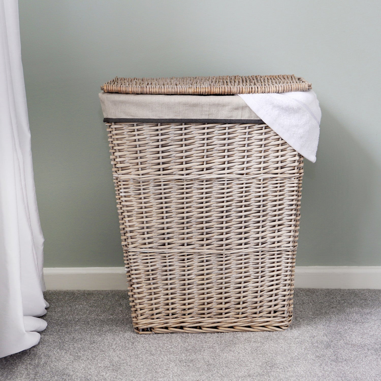 The rectangular lined laundry basket is perfect for the bathroom, laundry/utility room or the bedroom.