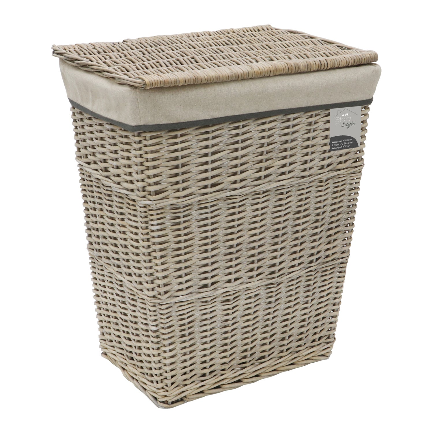Arianna Antique Wash Rectangular Willow Laundry Basket