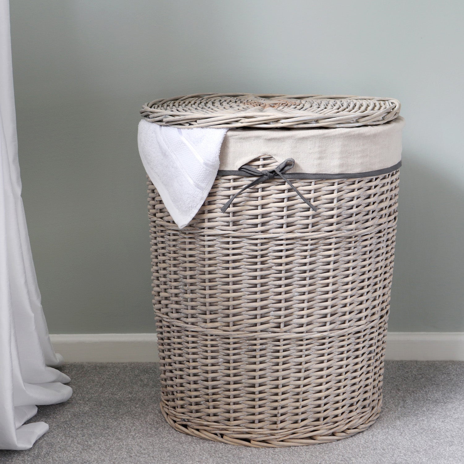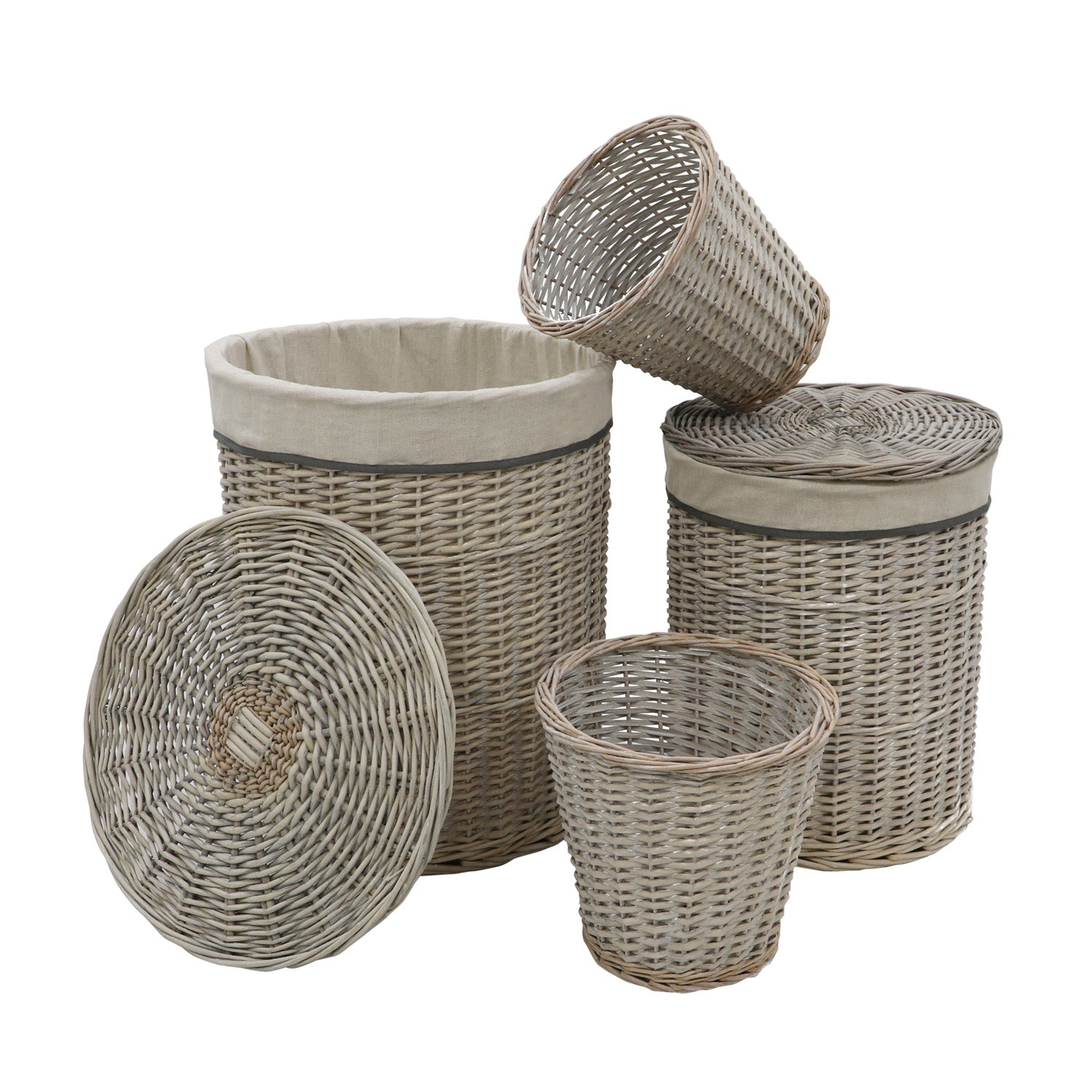 Arianna Antique Wash Round Willow Laundry Baskets and Bins Set