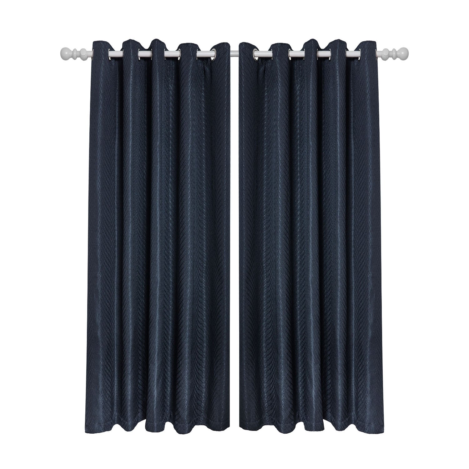 Aura Navy Jacquard Eyelet Curtains