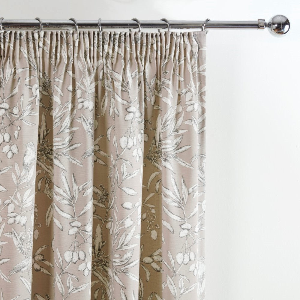 Aviary Natural Parchment Woodland Pencil Pleat Curtains