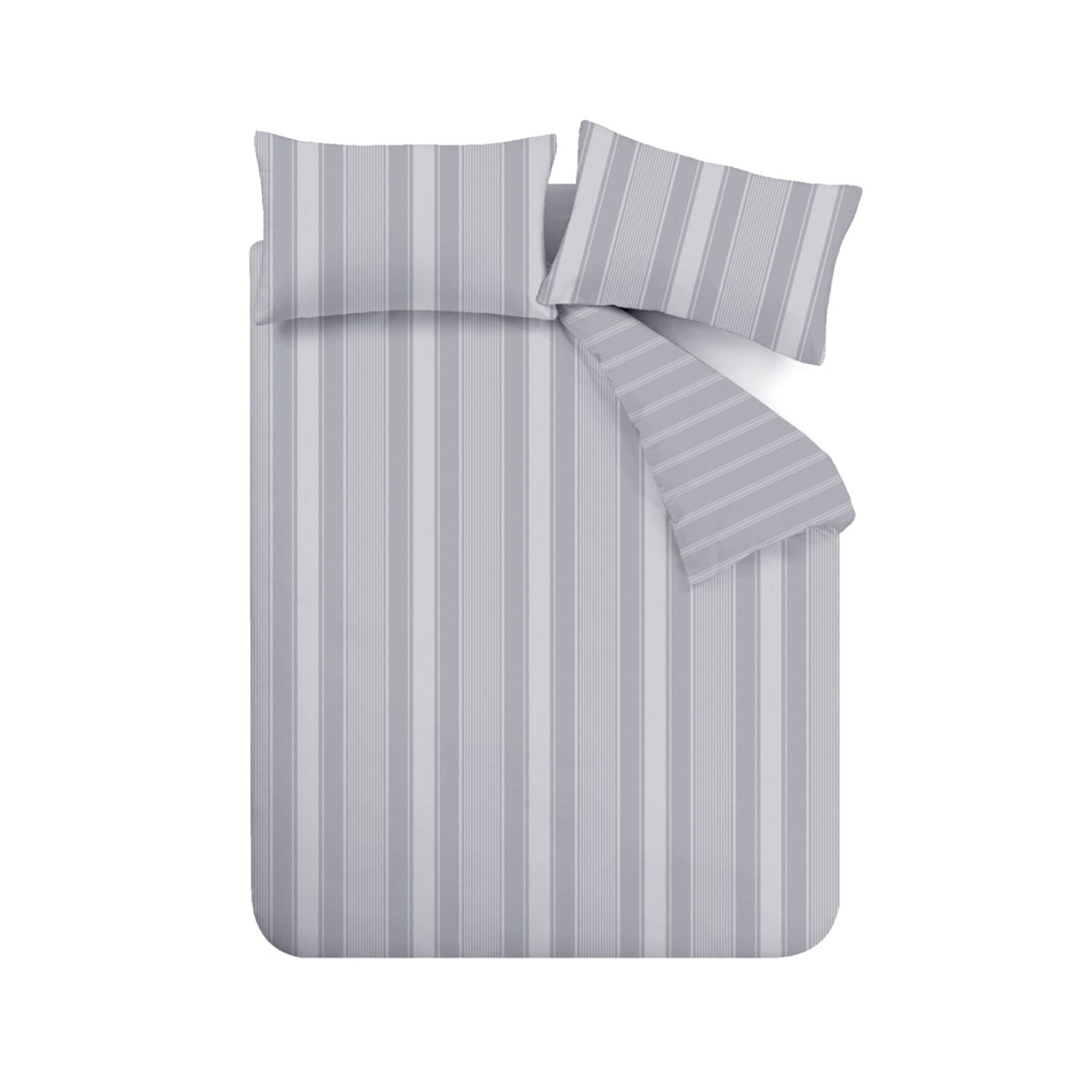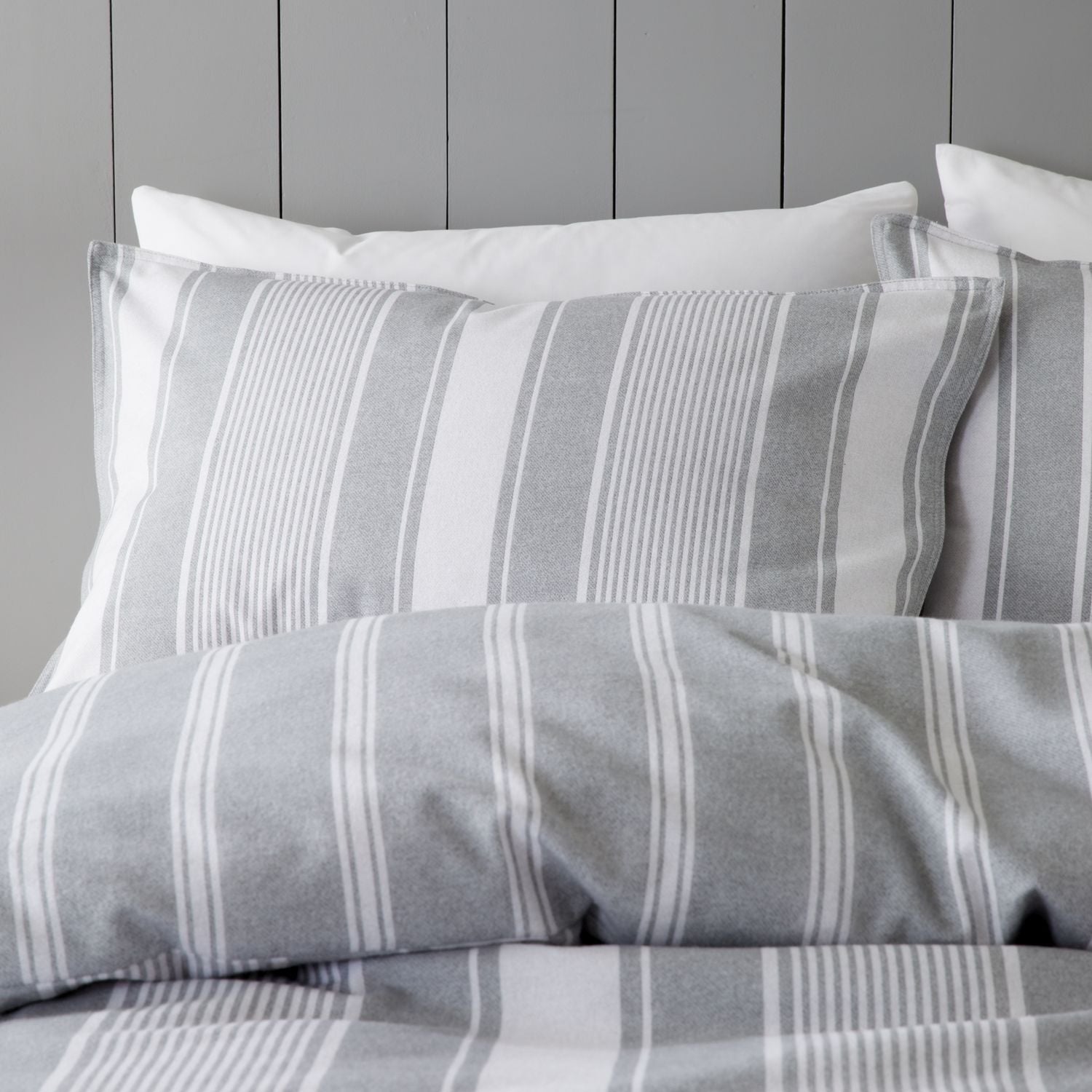 Bianca Brushed Cotton Grey Ticking Stripe Reversible Duvet Set