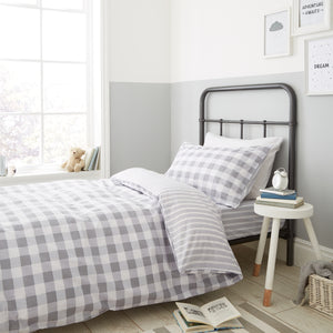 Introducing the Bianca Grey Check And Stripe Cotton Fitted Sheet, the perfect way to introduce a classic look into a children's or spare bedroom.