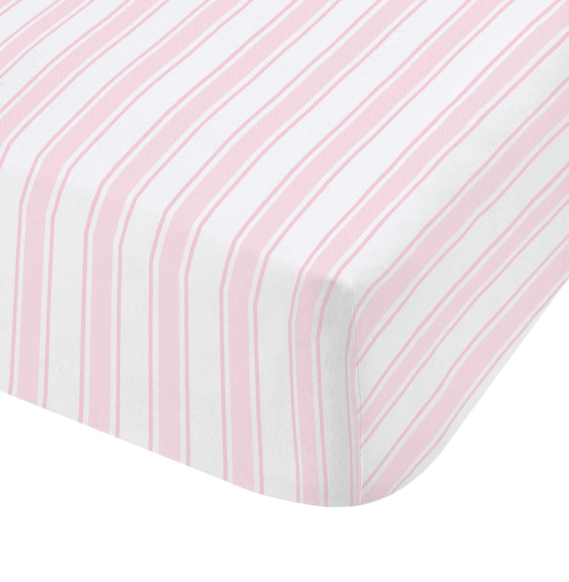 The sheet presents itself with ticking stripes in blush pink and white, the perfect item to coordinate with the match duvet set.