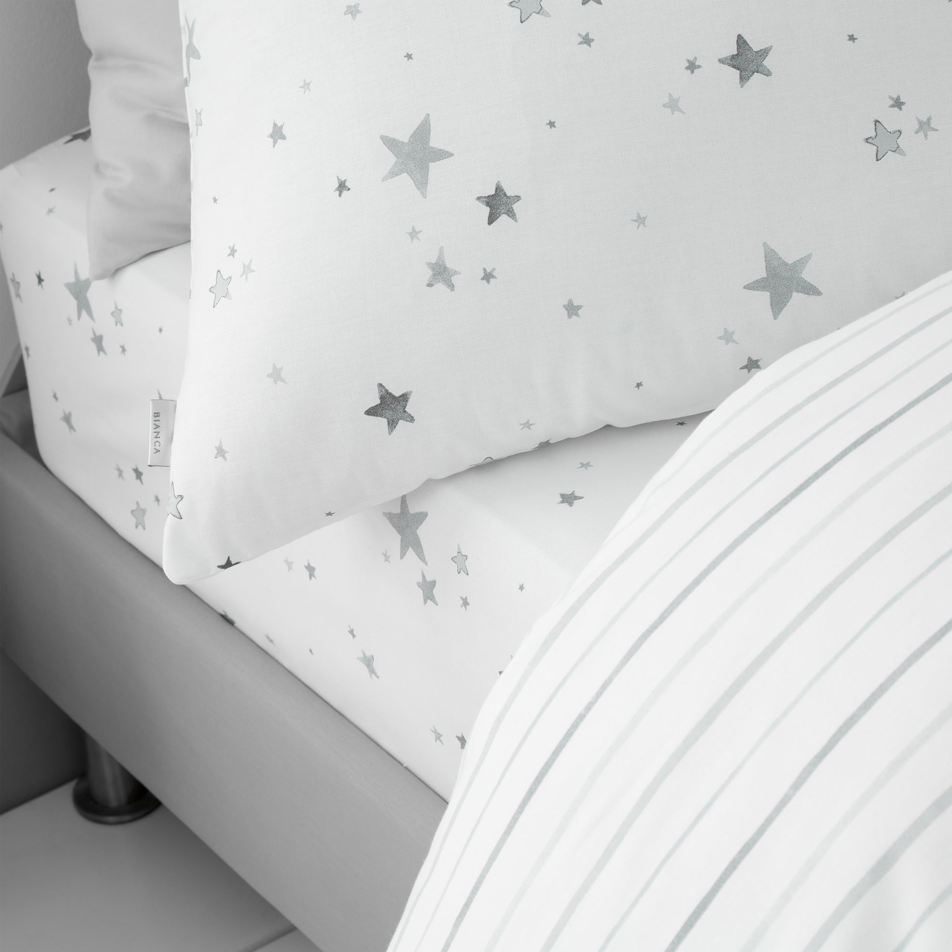 The Bianca Grey Stars Kids Cotton Fitted Sheet is the perfect addition to any child's bedroom. Beautifully crafted from superior quality cotton, this classic fitted sheet features a sprinkling of stars for your little one’s imagination to explore.