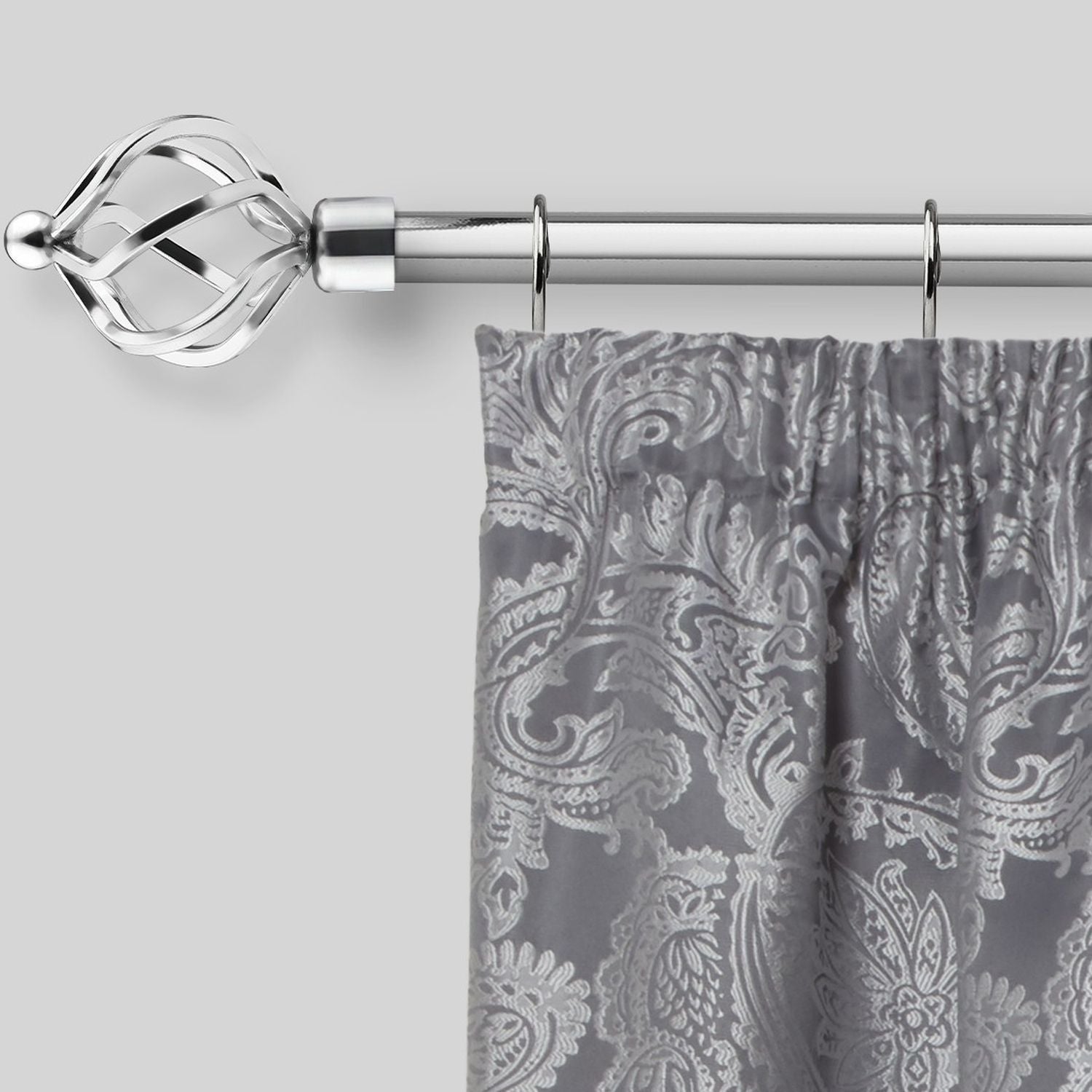 This Chrome Bird Cage Extendable Curtain Pole with is designed for any type of curtain (eyelet or pencil pleat) and includes optional curtain rings for the purpose of hanging pencil pleat curtains.