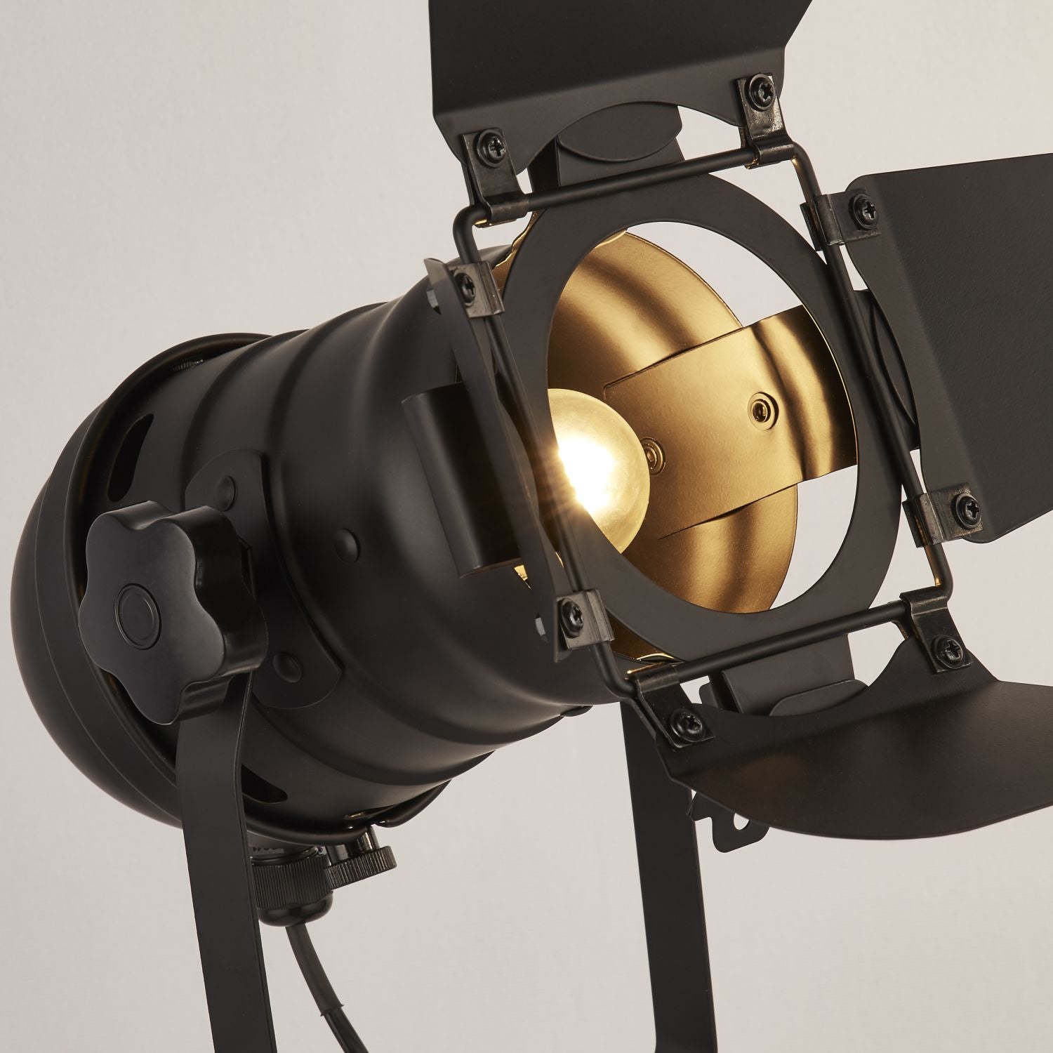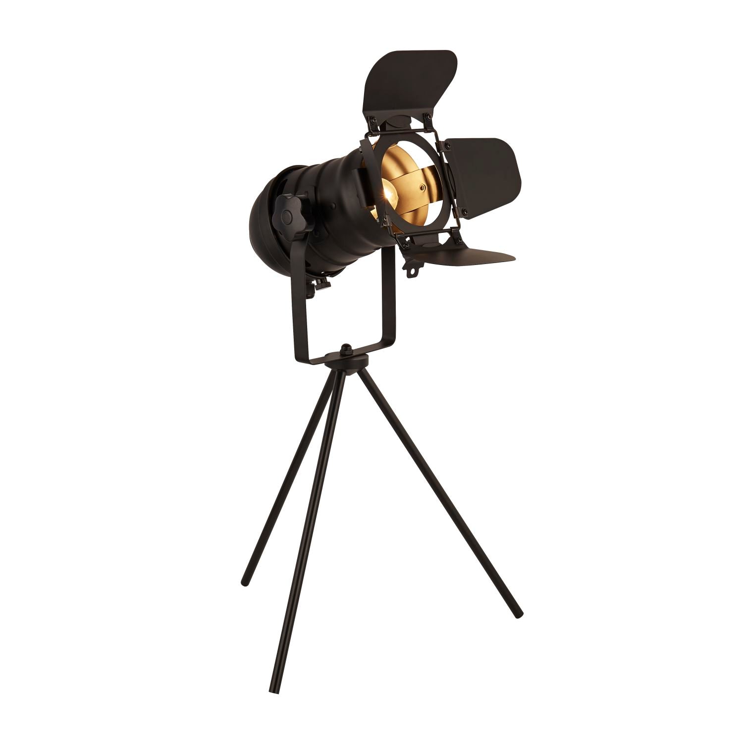 Transform your living space into a glamorous movie set with our film studio-inspired tripod table lamp. Boasting a sleek, black tripod base and an adjustable shade reminiscent of classic cinema lighting, this lamp is sure to catch the eye and bring a touch of sophistication to any home décor.