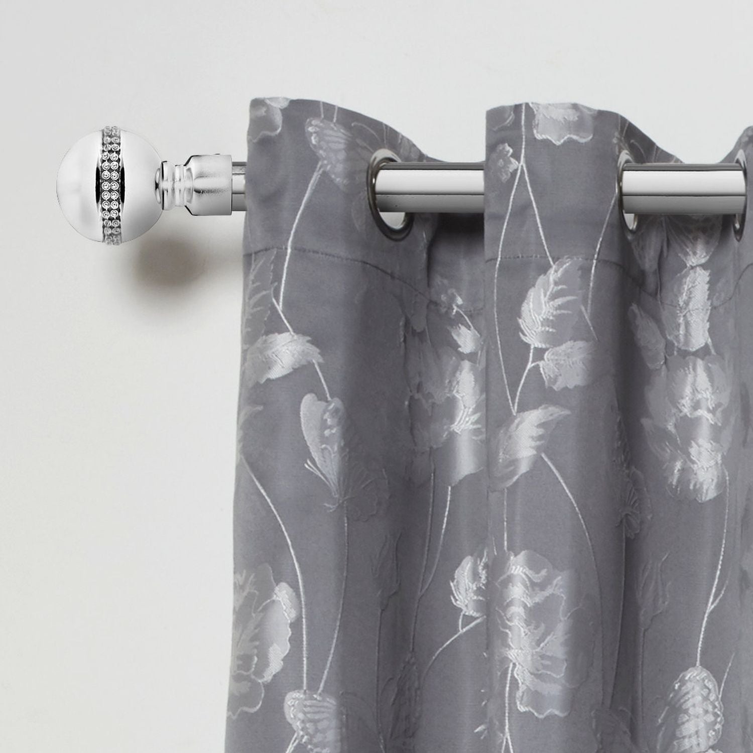 This Chrome Bling Diamond Extendable Curtain Pole is designed for eyelet or slot top curtains and voiles, so does not include unnecessary curtain rings.