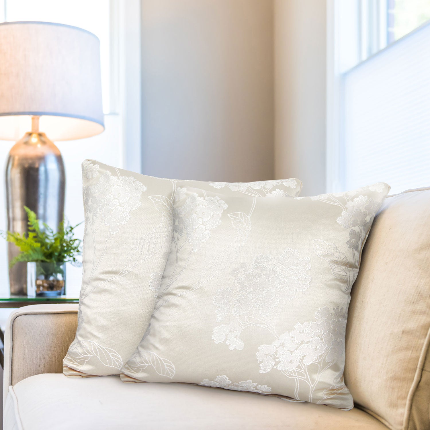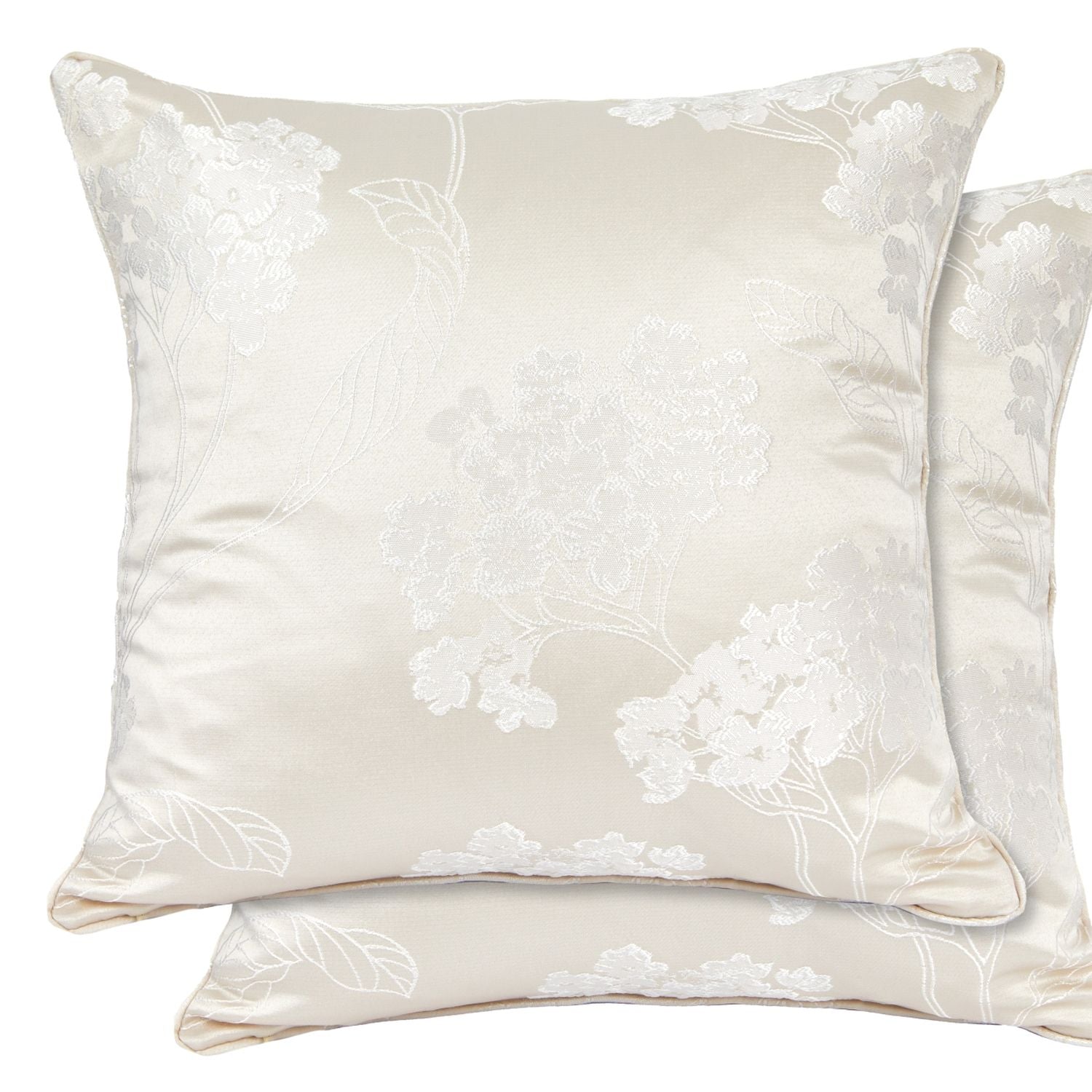 Blossom Cream Jacquard Cushion Covers Pair (43cm x 43cm)