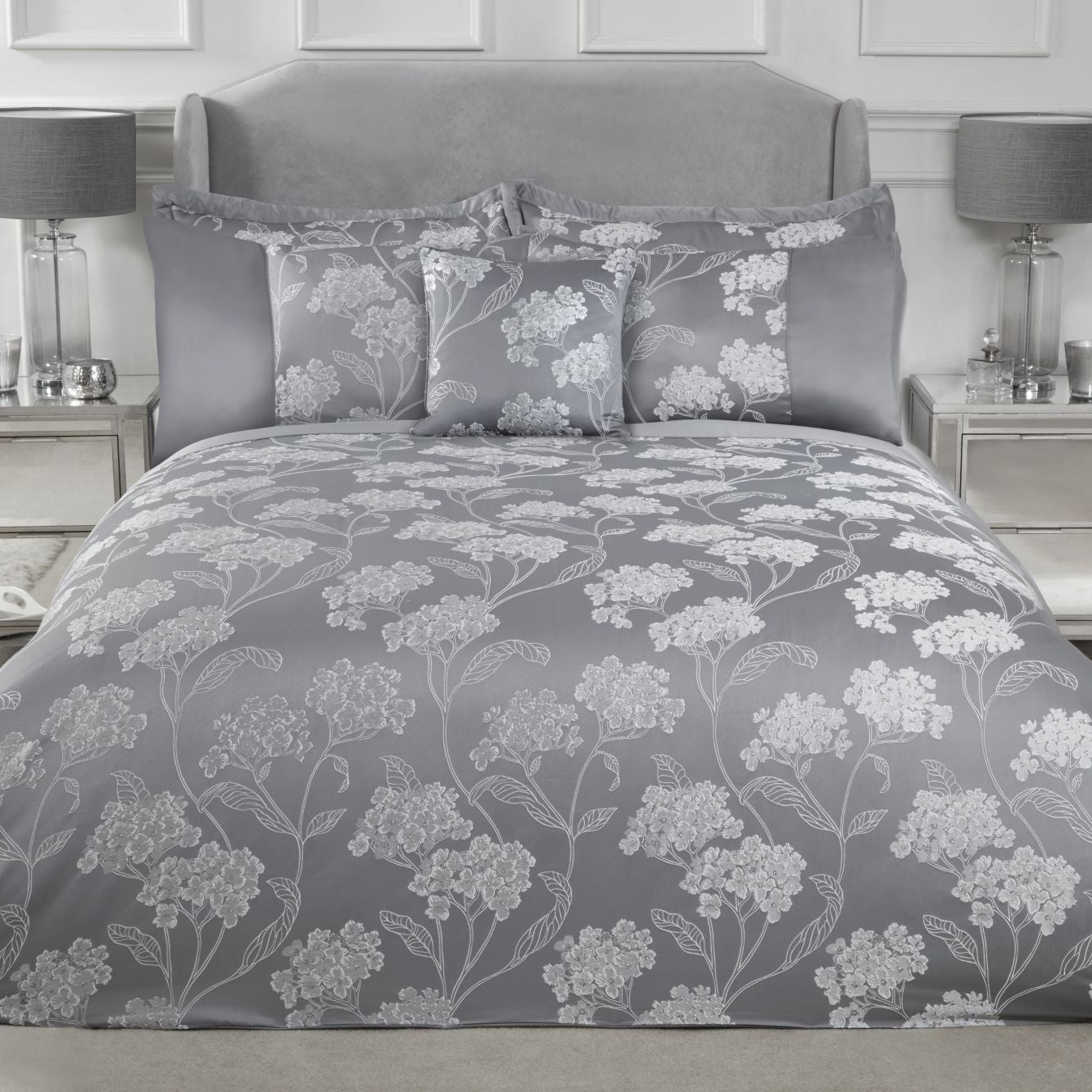 Introducing the Silver Blossom Jacquard Duvet Set - a design upgrade for your bedroom!