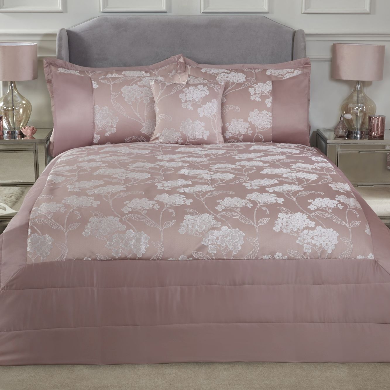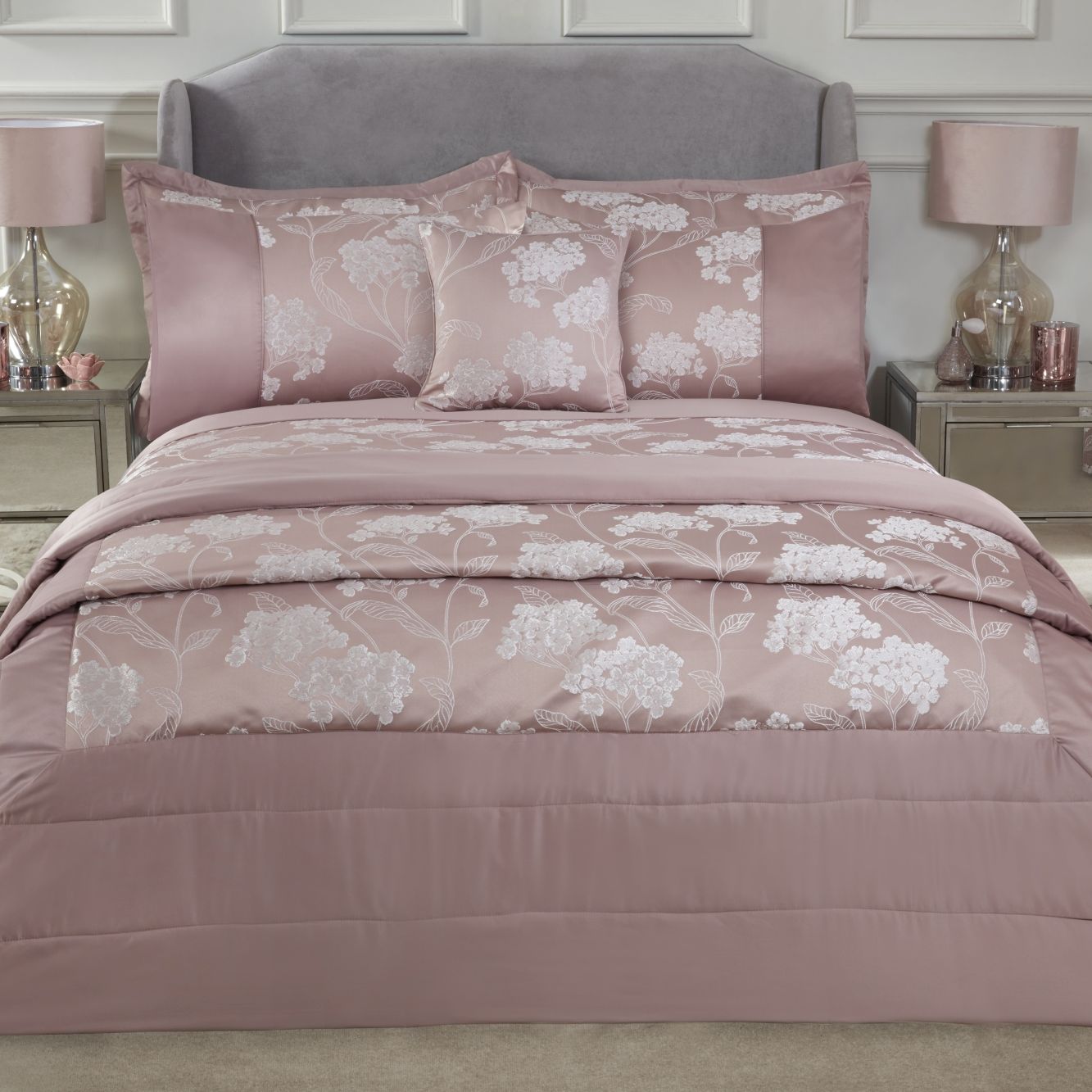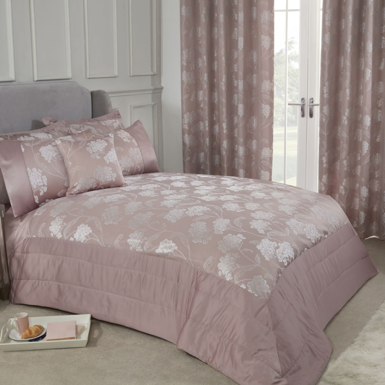 Blossom Blush Pink Embellished Jacquard Quilted Bedspread Set (220cm x 240cm)
