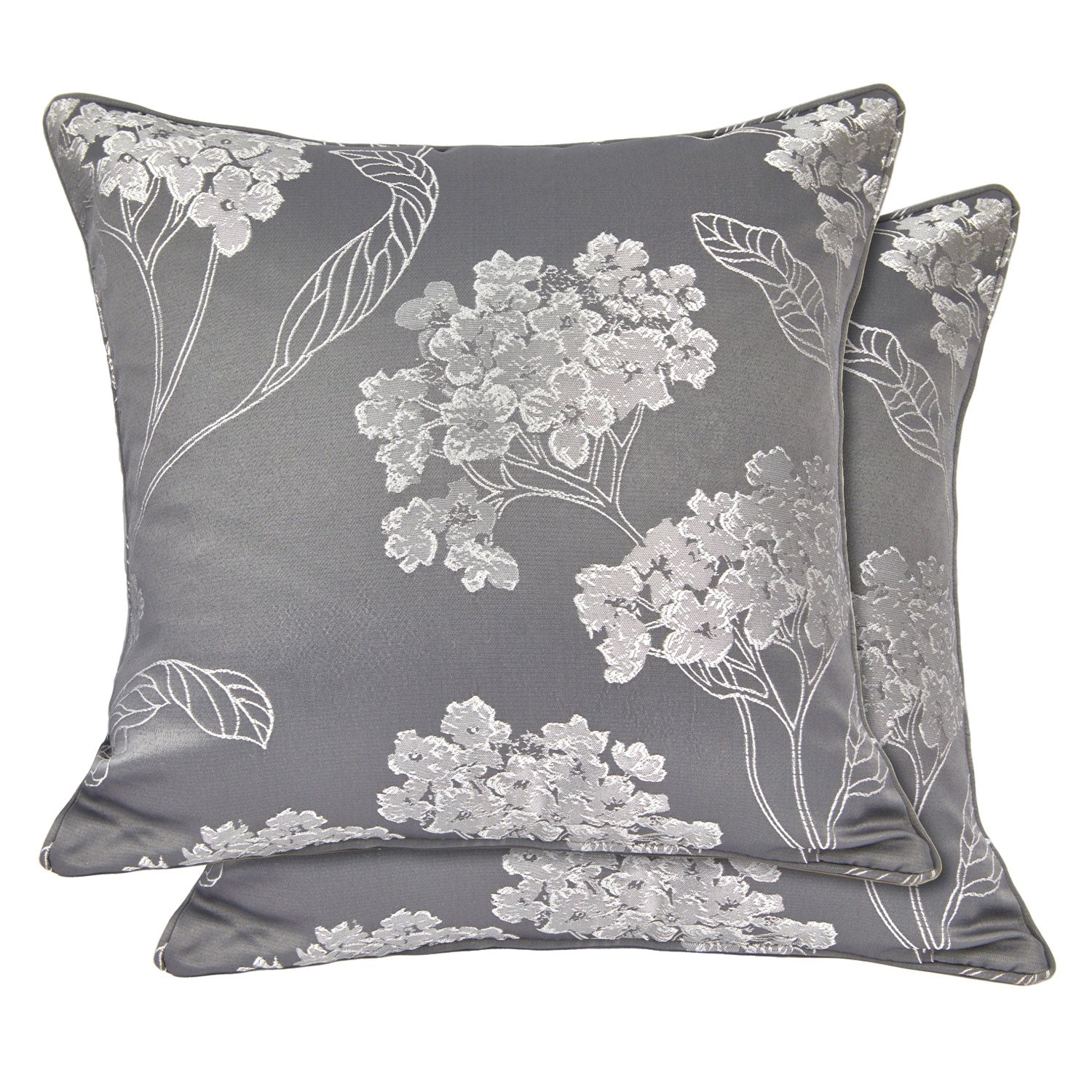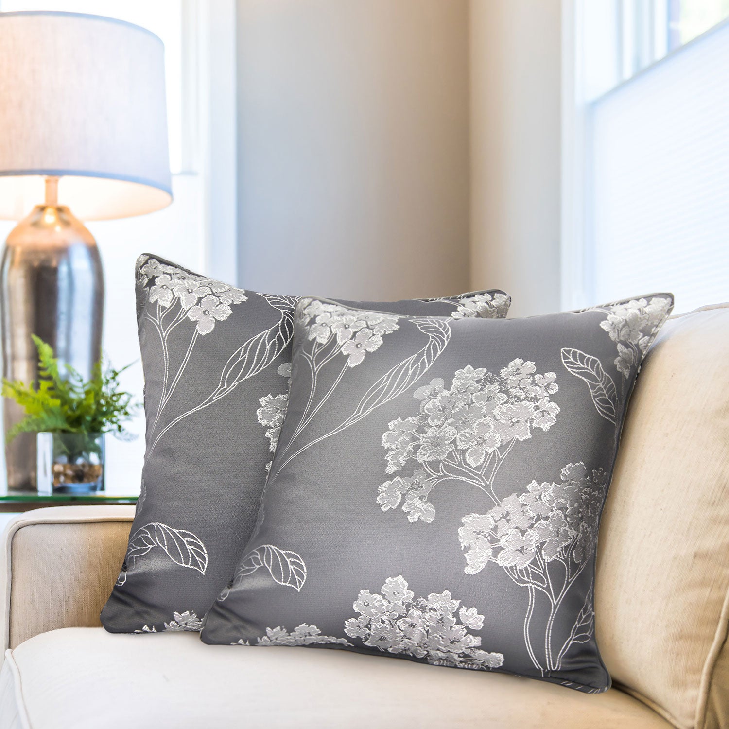 Blossom Silver Jacquard Cushion Covers Pair (43cm x 43cm)
