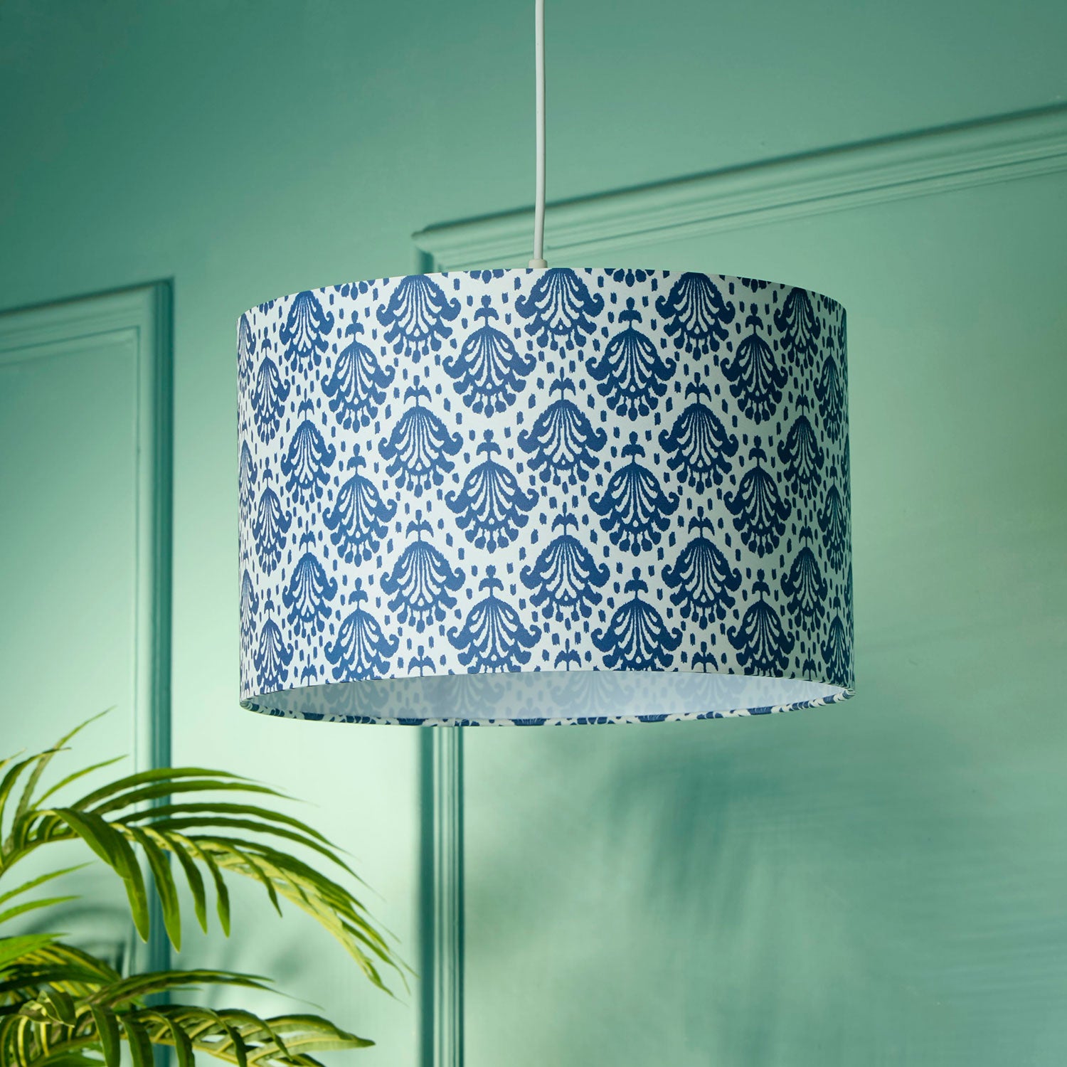 This chic easy-fit shade with classic blue damask print will add a touch of vintage elegance to any room.