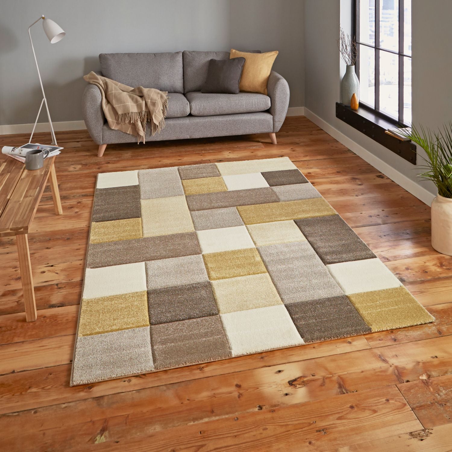 Brooklyn 646 Beige and Yellow Modern Geometric Rug