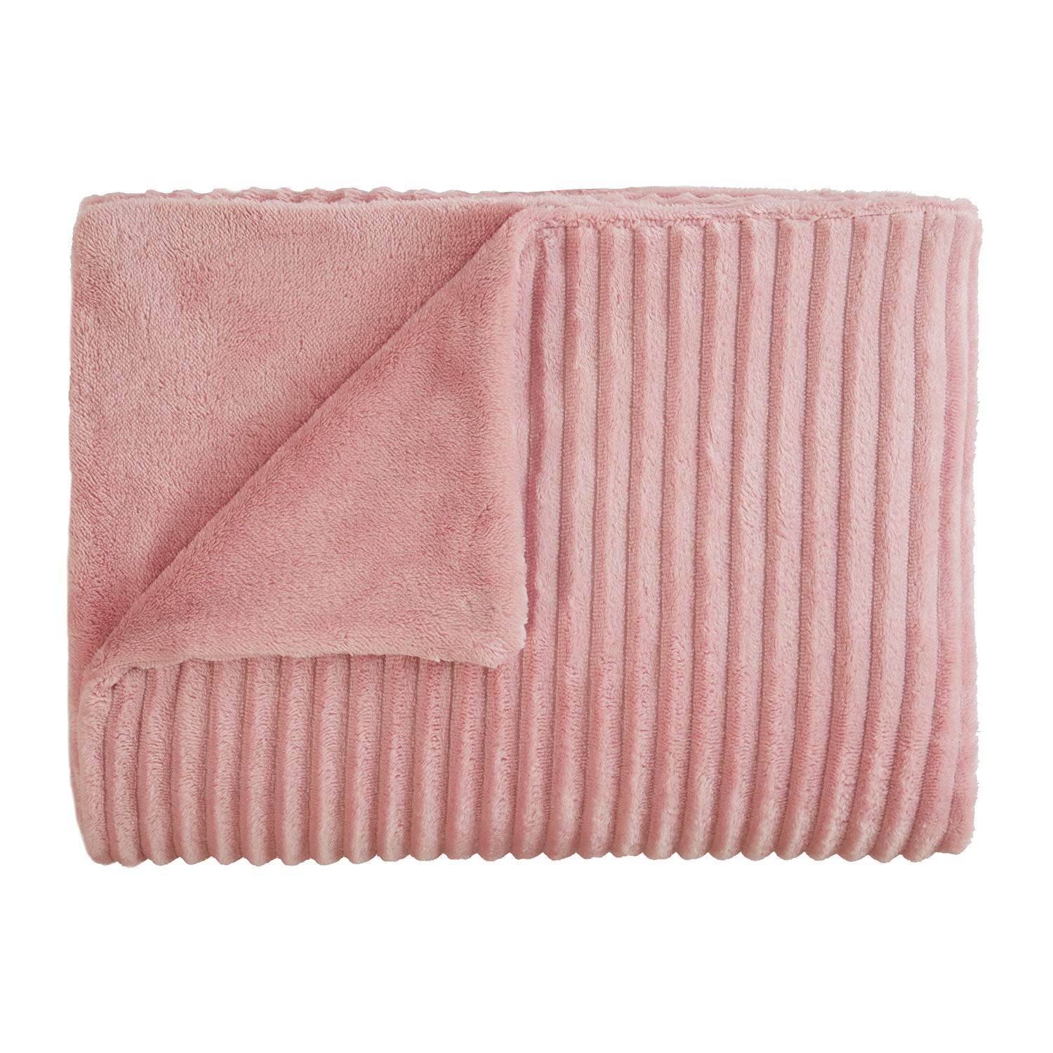 Brooklyn Blush Chunky Ribbed Fleece Throw (130cm x 180cm)
