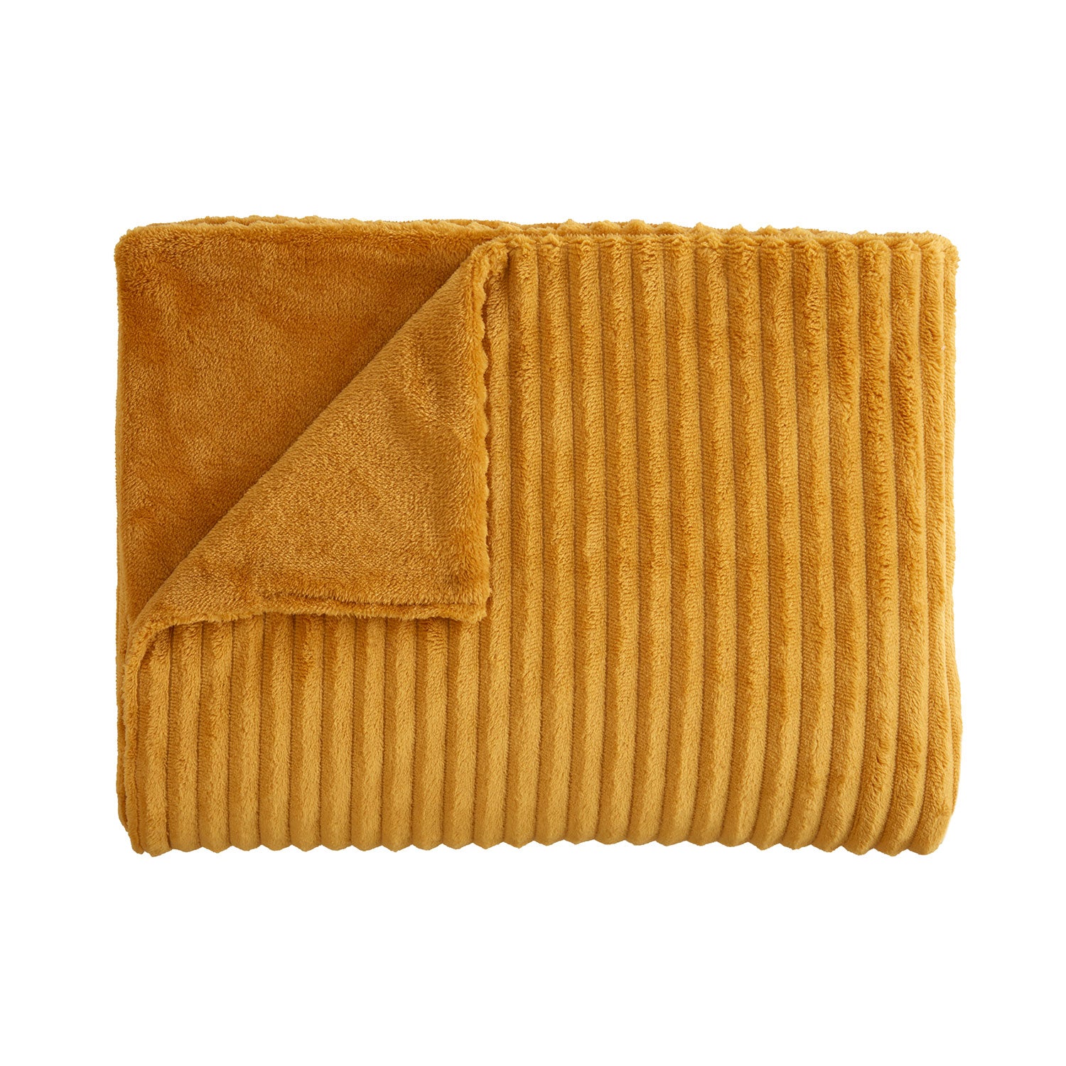 Brooklyn Ochre Chunky Ribbed Fleece Throw (130cm x 180cm)
