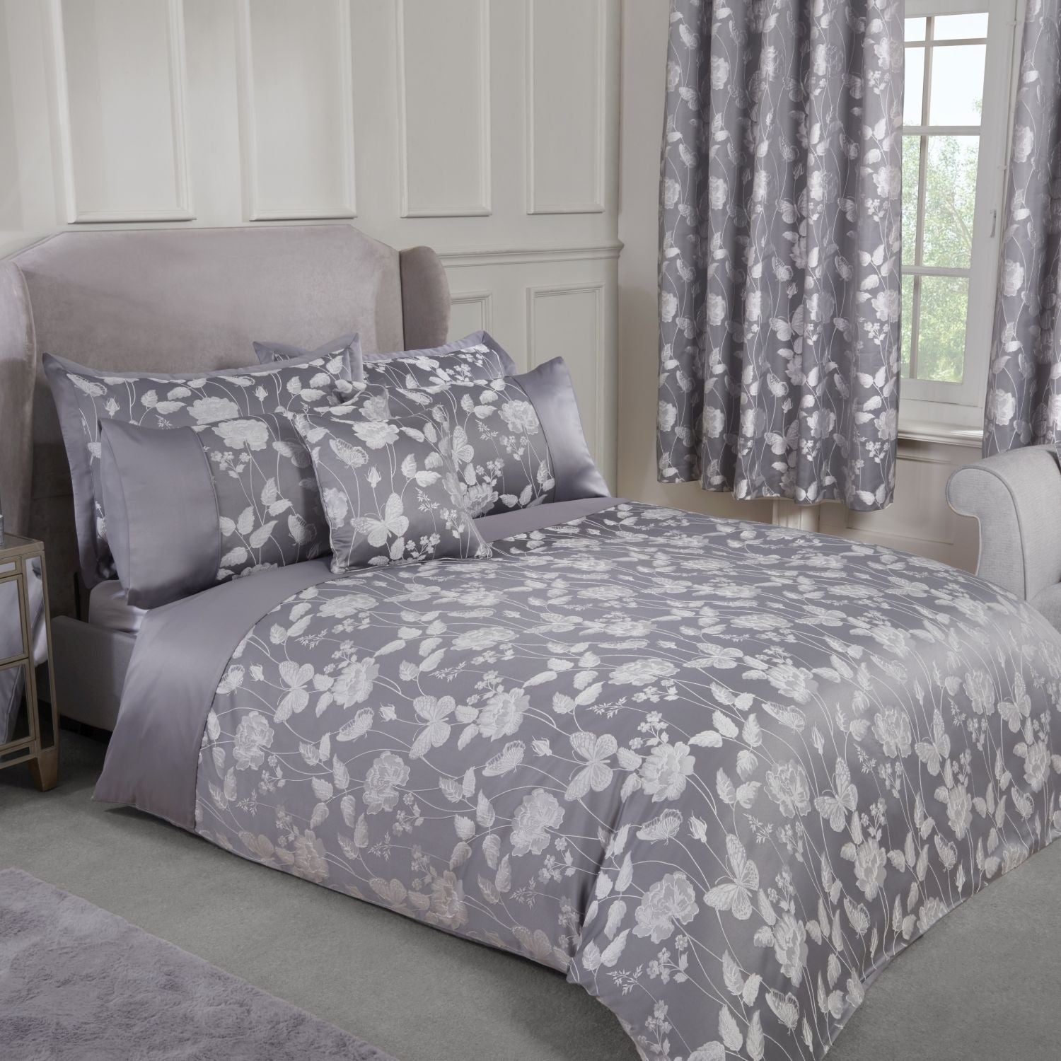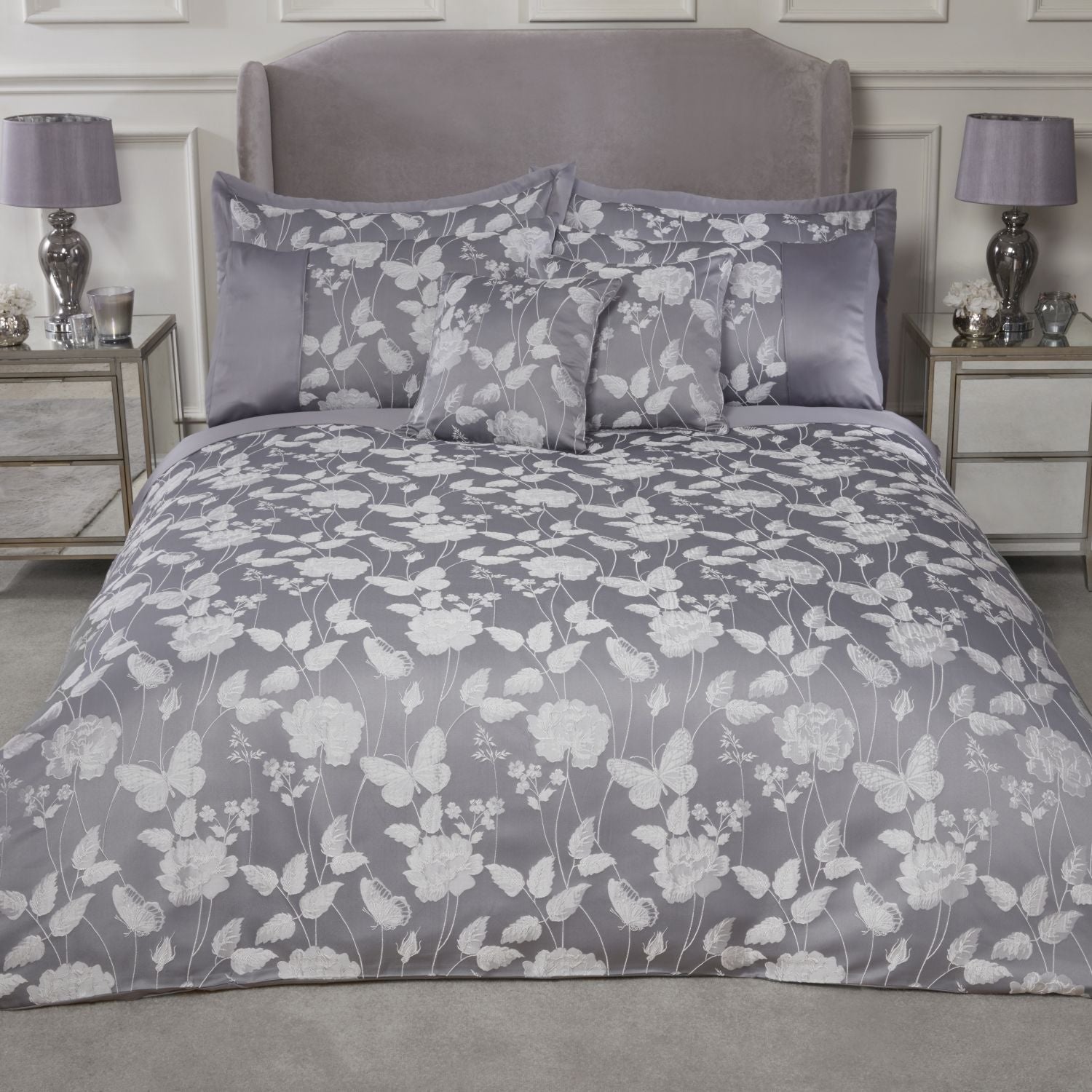 Bring a touch of beauty to your bedroom with the Silver Butterfly Meadow Embellished Jacquard Duvet Set.