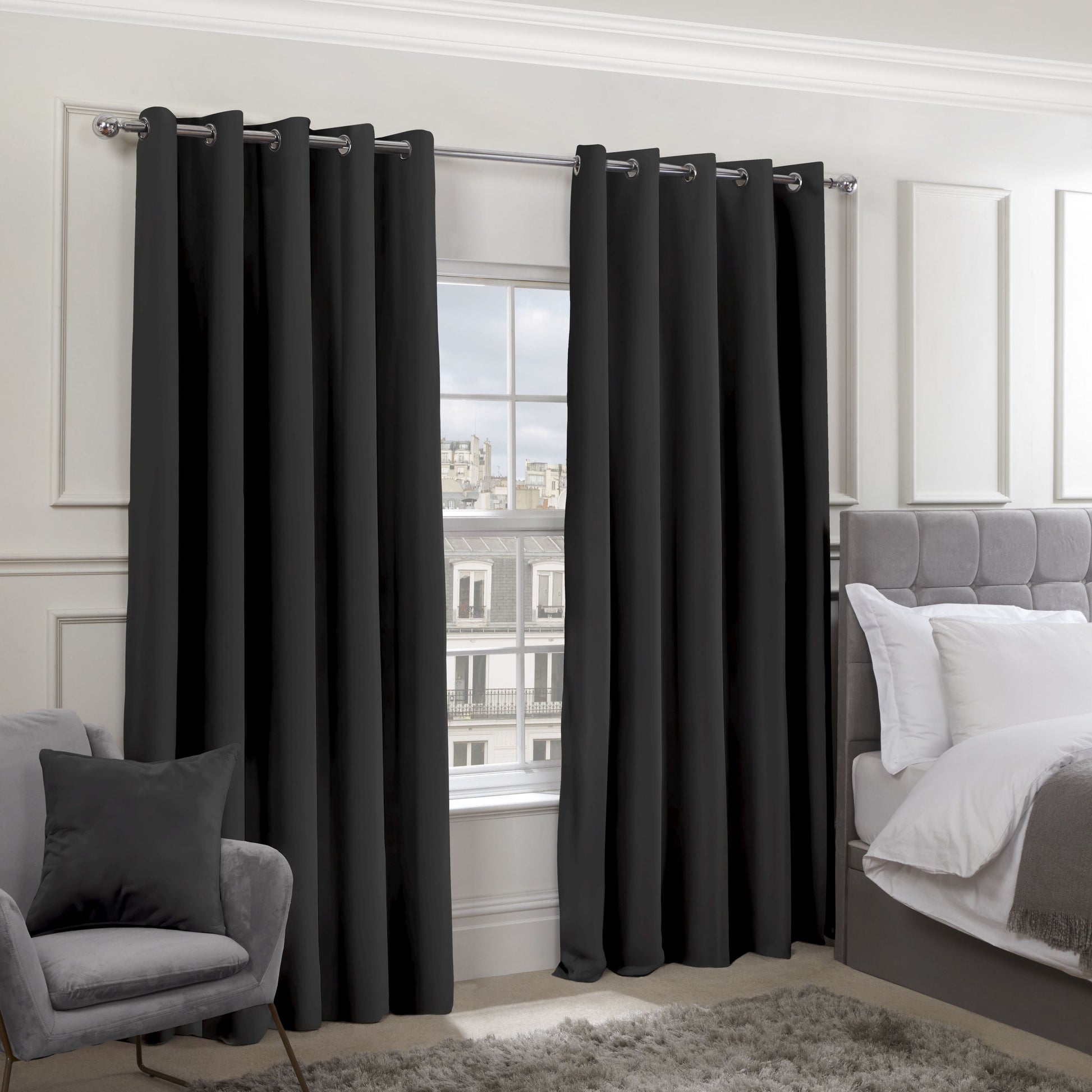 Experience peace and quiet with Cali Thermal Blackout Eyelet Curtains. These thermal lined curtains not only filter light and heat but also reduce noise for a blissful night's sleep.