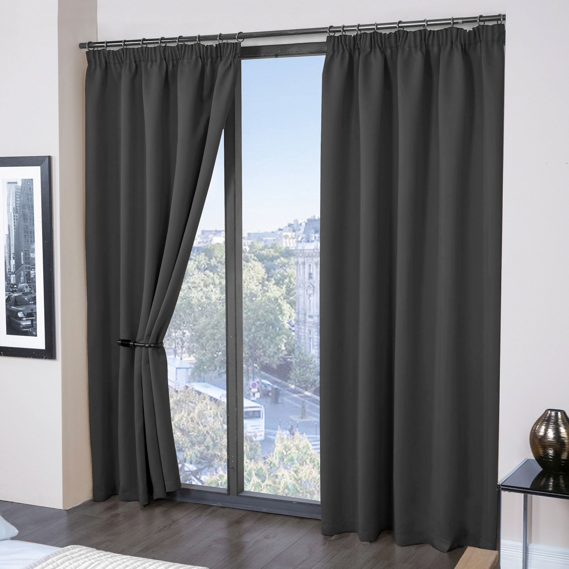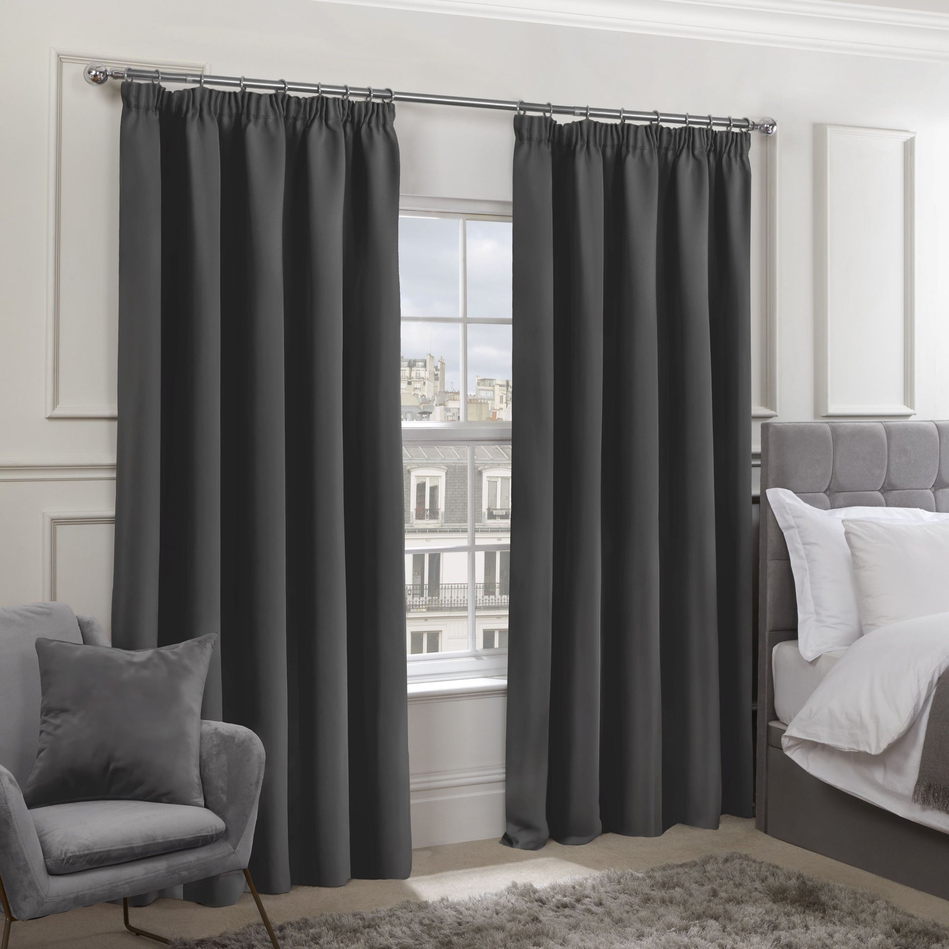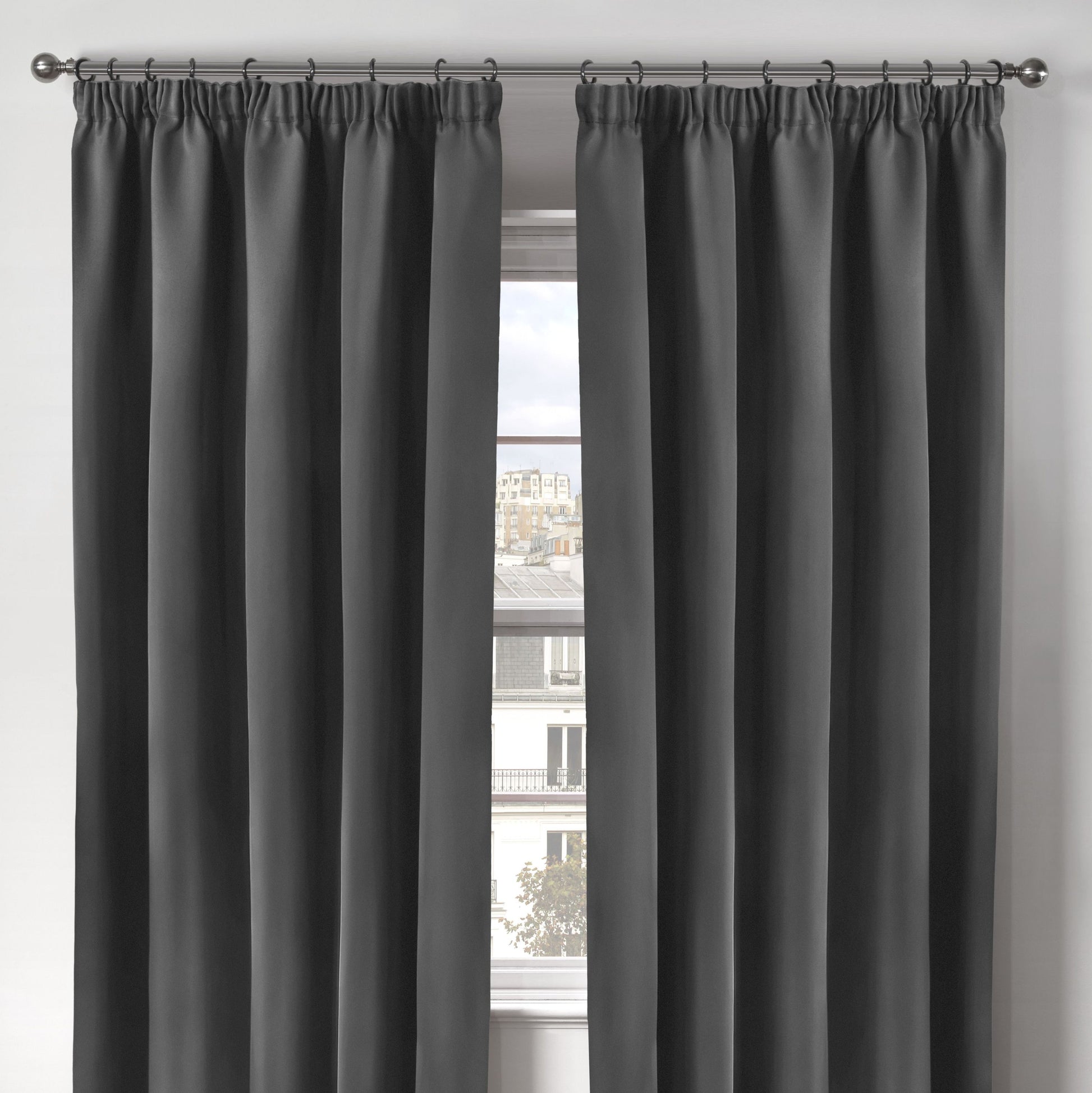 Cali Charcoal Grey Thermal Blackout Pencil Pleat Curtains
