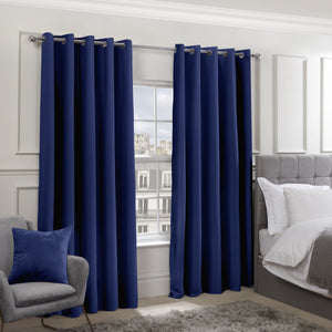 Cali Navy Blue Thermal Blackout Eyelet Curtains