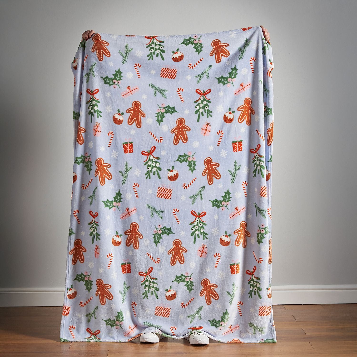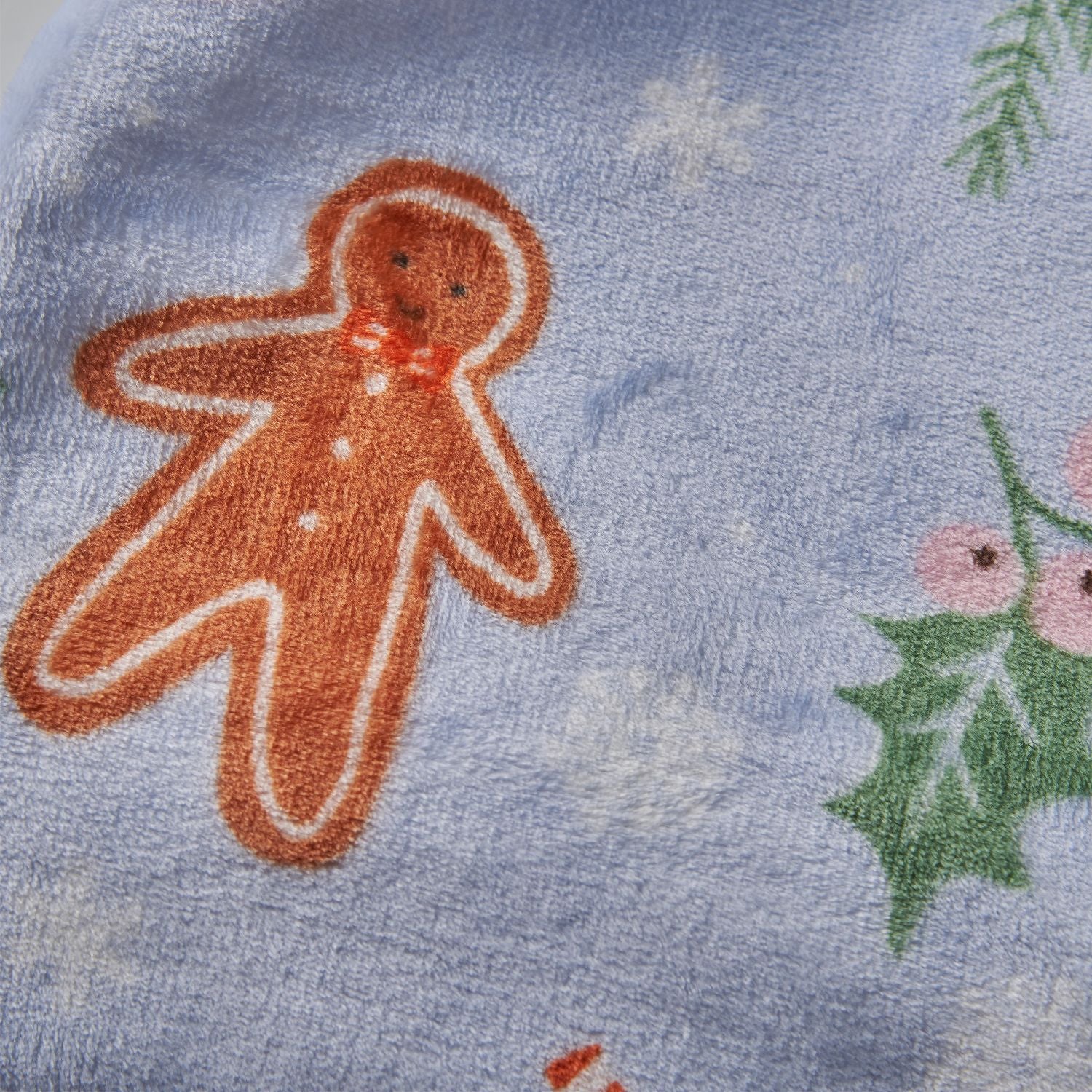 Catherine Lansfield Christmas Gingerbread Blue Cosy Fleece Throw