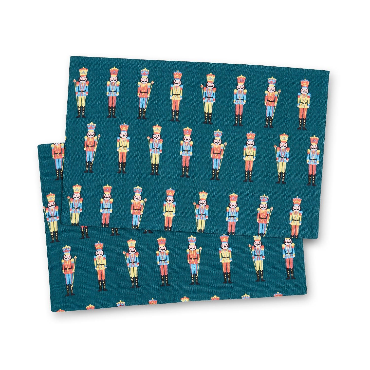 Create a dining space full of holiday cheer with this nutcracker Christmas design, wooden soldiers parade across a festive deep green base. Washing machine safe, these fully reversible mats are perfect for keeping your table clean for the big day.