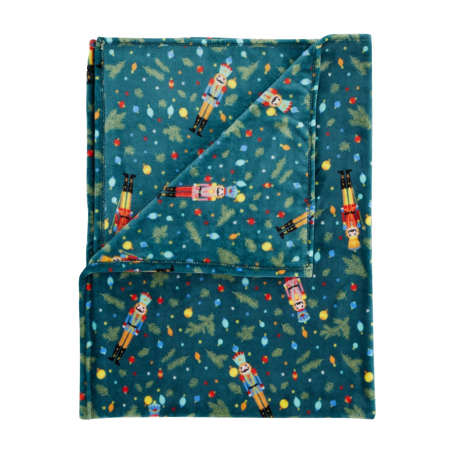 Catherine Lansfield Christmas Nutcracker Green Fleece Cosy Throw