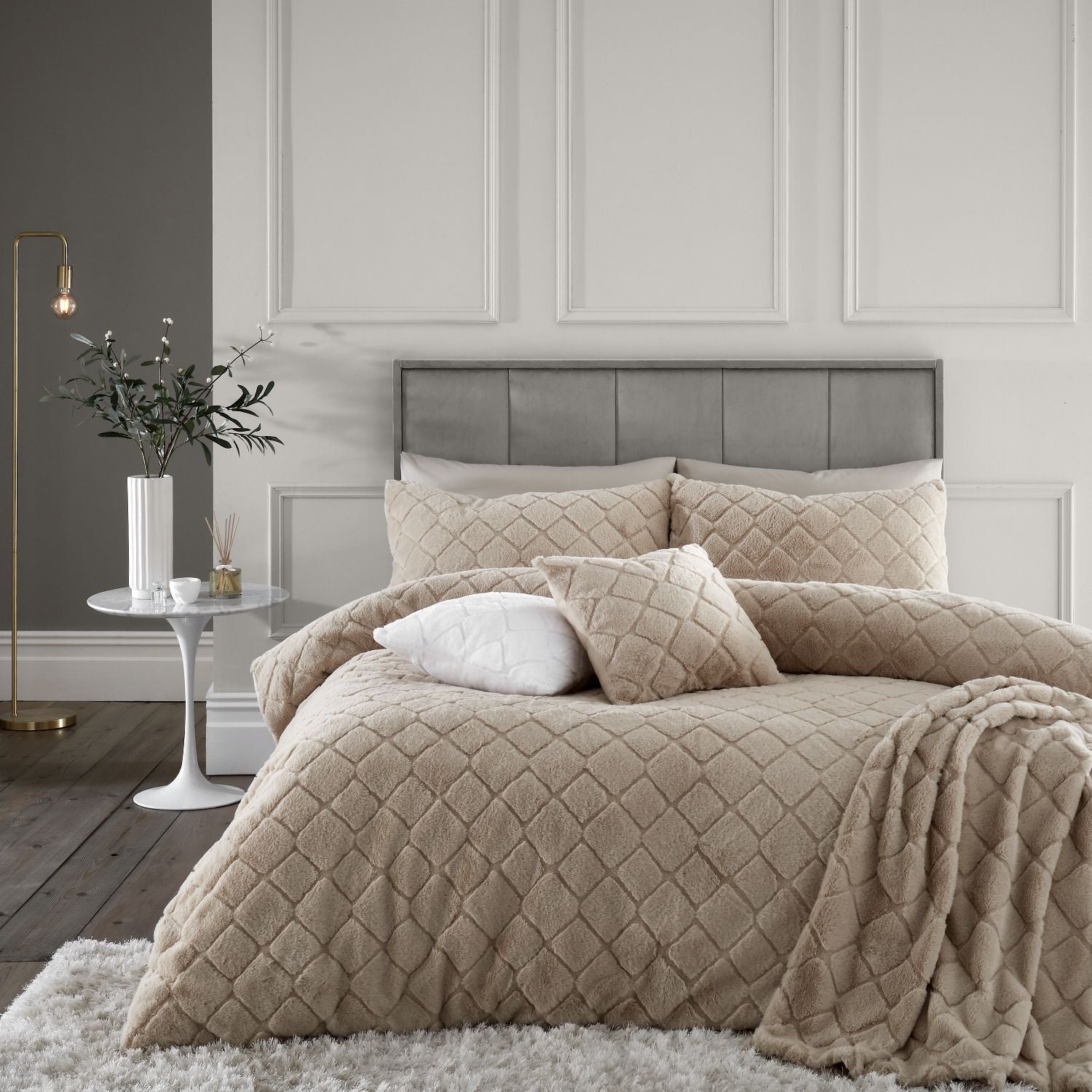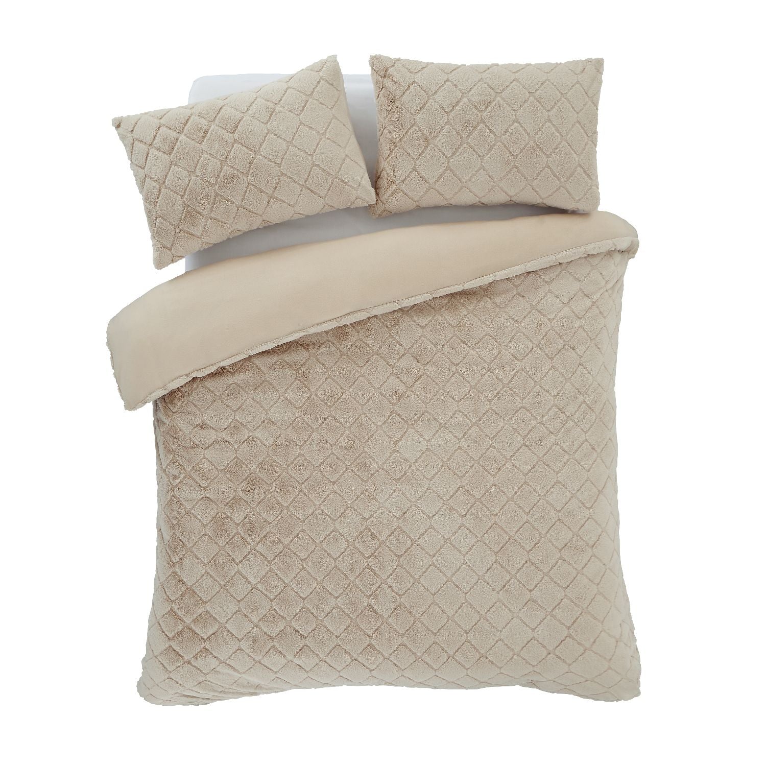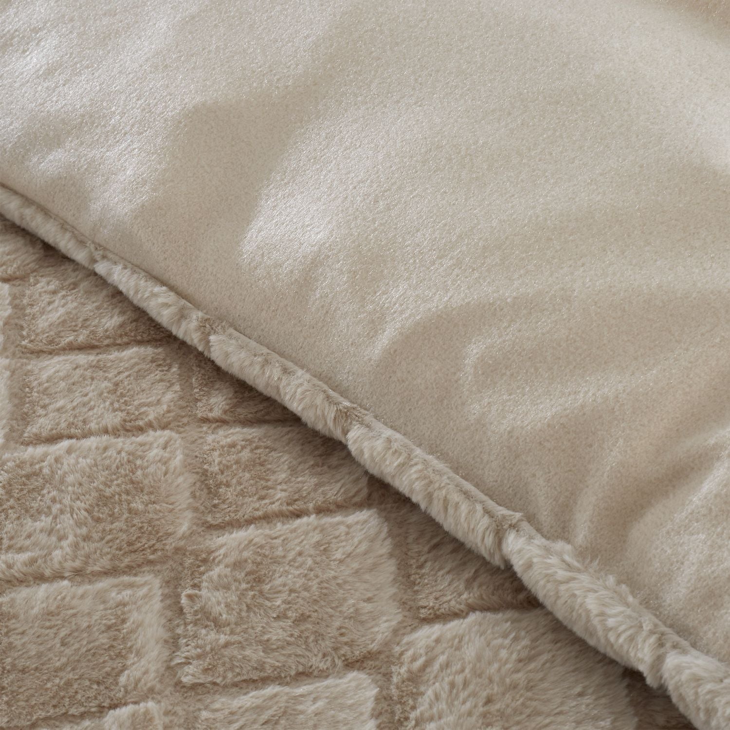 Catherine Lansfield Cosy Diamond Natural Faux Fur Duvet Set