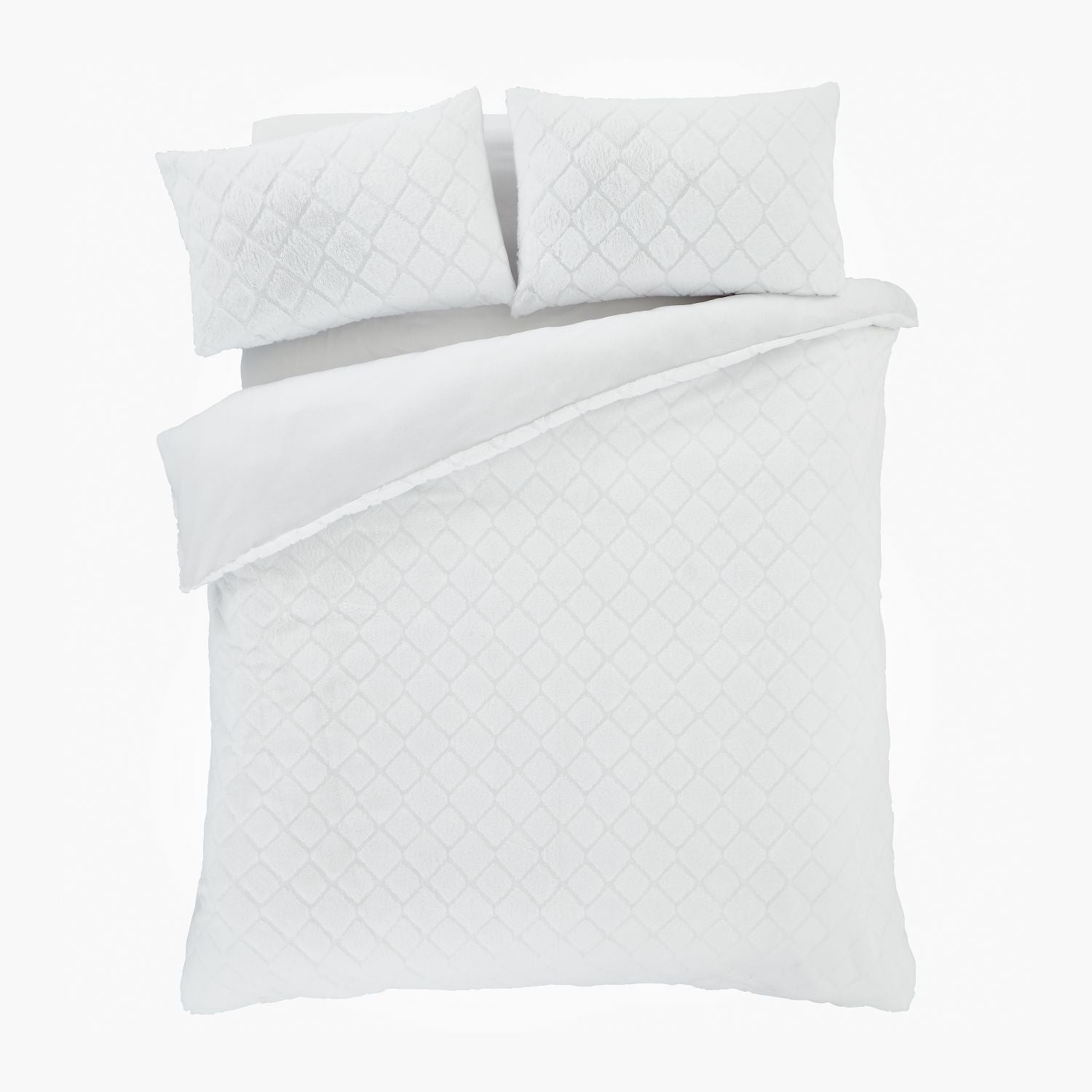 Catherine Lansfield Cosy Diamond White Faux Fur Duvet Set