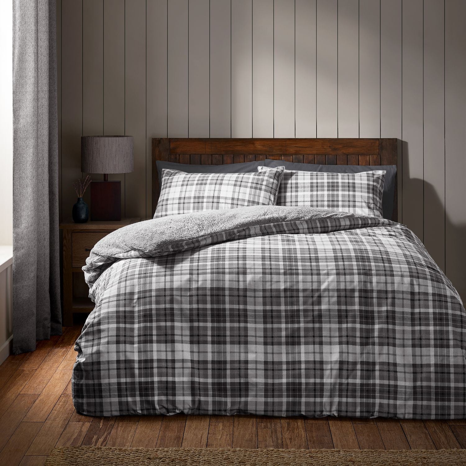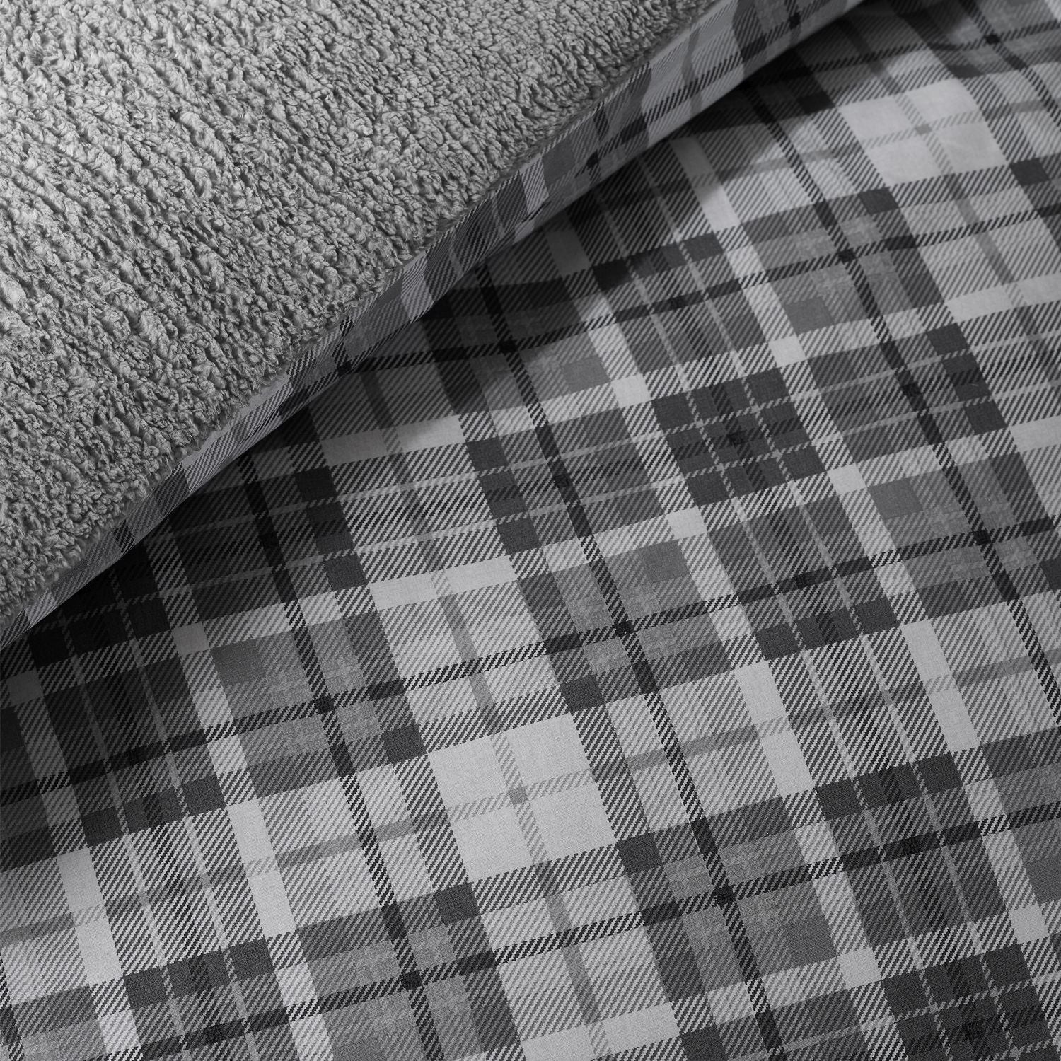 Catherine Lansfield Cosy Sherpa Fleece Grey Check Duvet Set